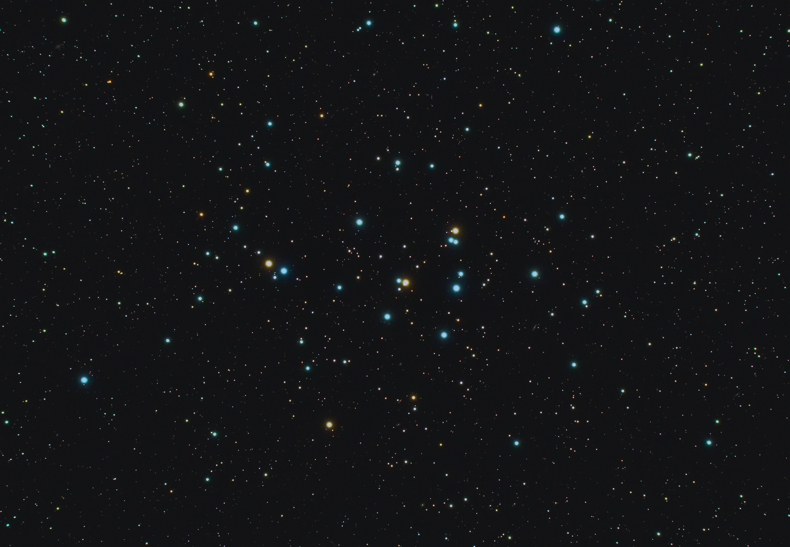 Messier 44, Praesepe, Sternbild Krebs. Offener Sternhaufen am Winterhimmel, tatsächlich auch ein Fernglasobjekt. In nicht lichtveschmutzter Gegend ist der Cluster gut zu erkennen.