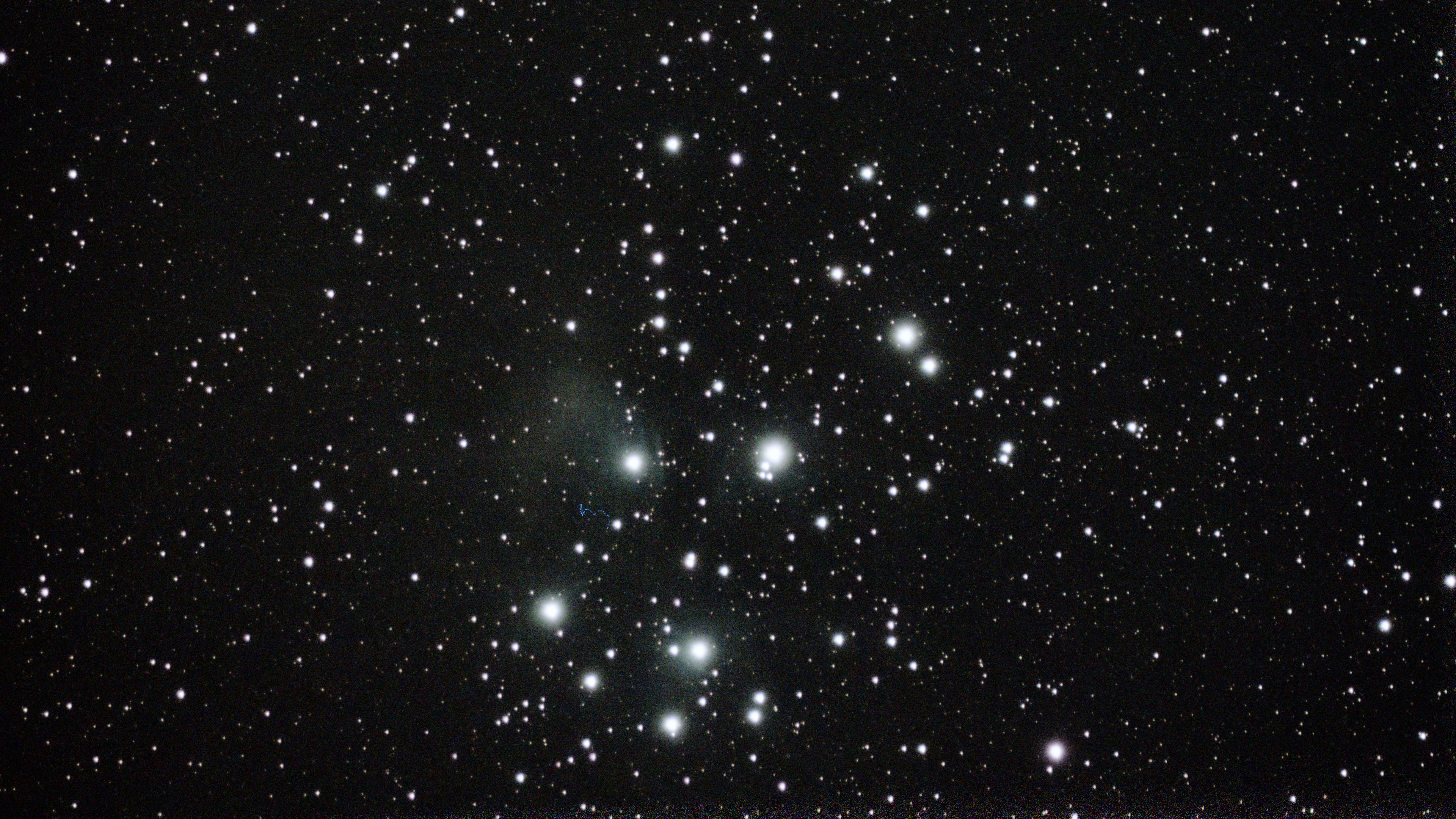 Mein erstes Foto vom Sternenhimmel mit dem Dwarf 2. Zu sehen ist das Siebengestirn M45. Ich muss da noch viel lernen und ausprobieren, aber auf meinem ersten Versuch bin ich ganz stolz.