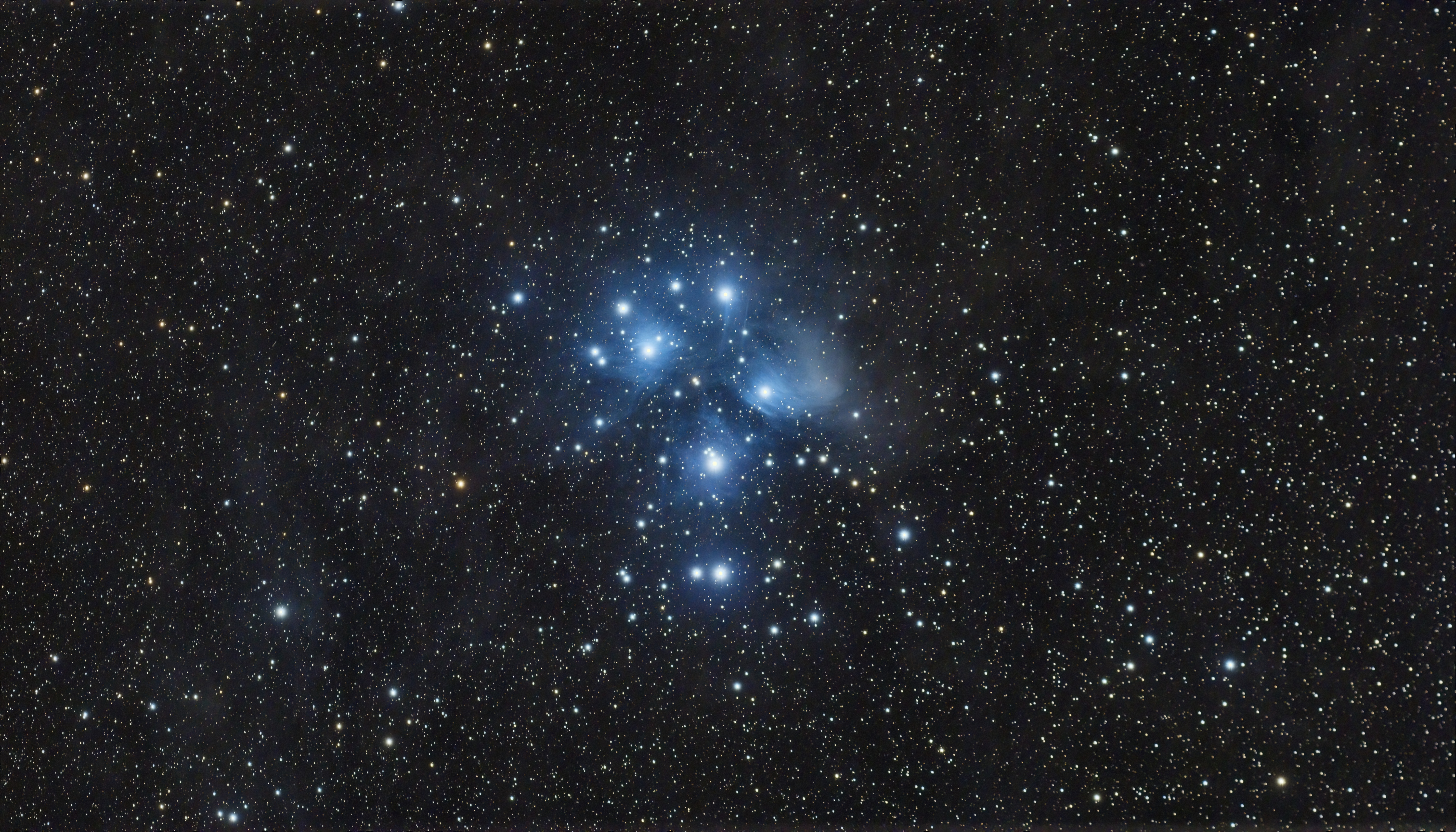 Nach einer endlos scheinenden Zeit war wieder mal der Sternenhimmel zu sehen. Eine Chance, die Plejaden M45 zu fotografieren. Ein wunderschöner offener Sternhaufen mit heißen jungen Sternen in einer Entfernung von etwa 440 Lichtjahren.