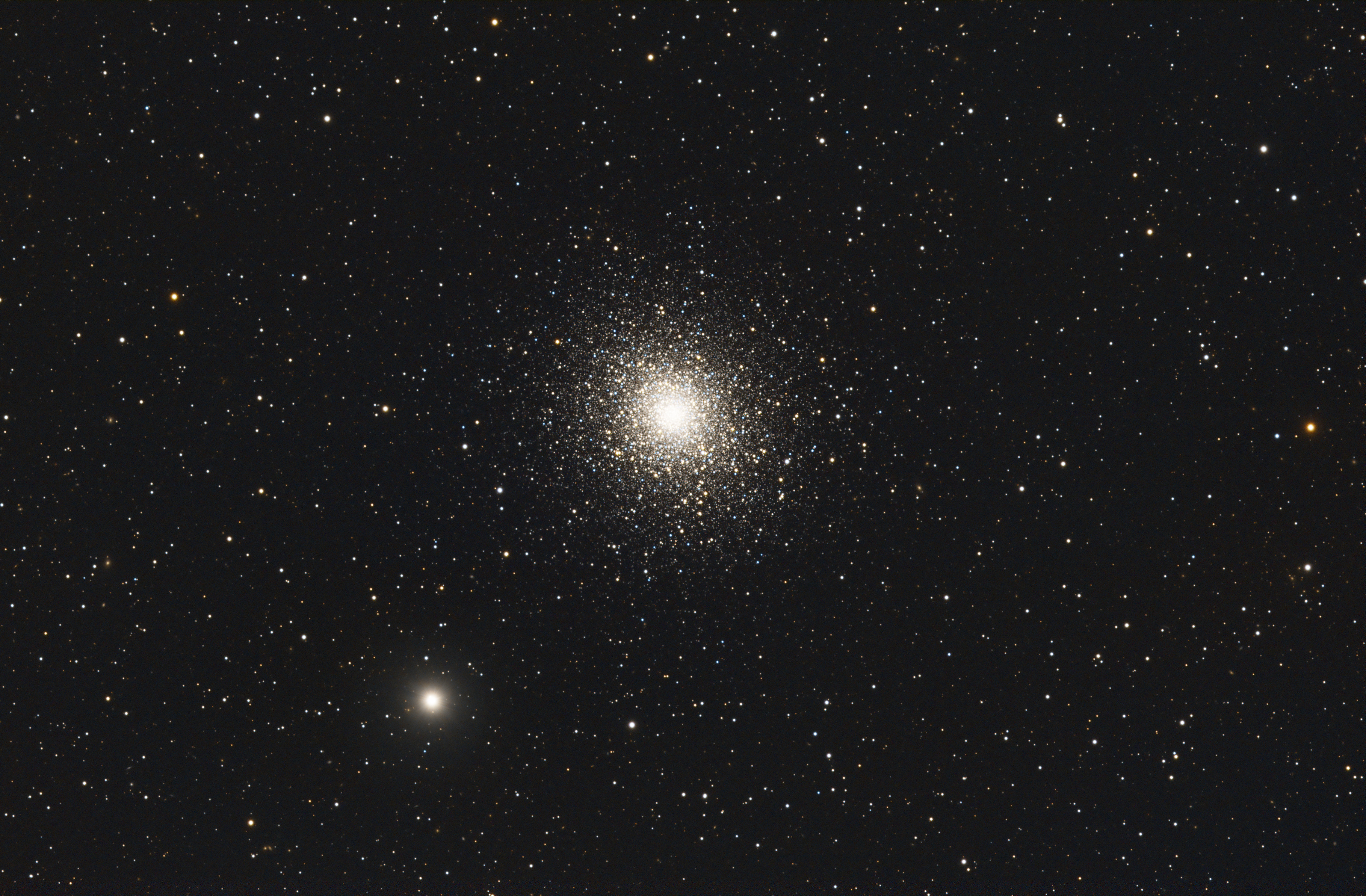 In zwei Nächten im April konnte ich diesen prächtigen Kugelsternhaufen im Sternbild Schlange mit meinem 140-mm-Refraktor ablichten.