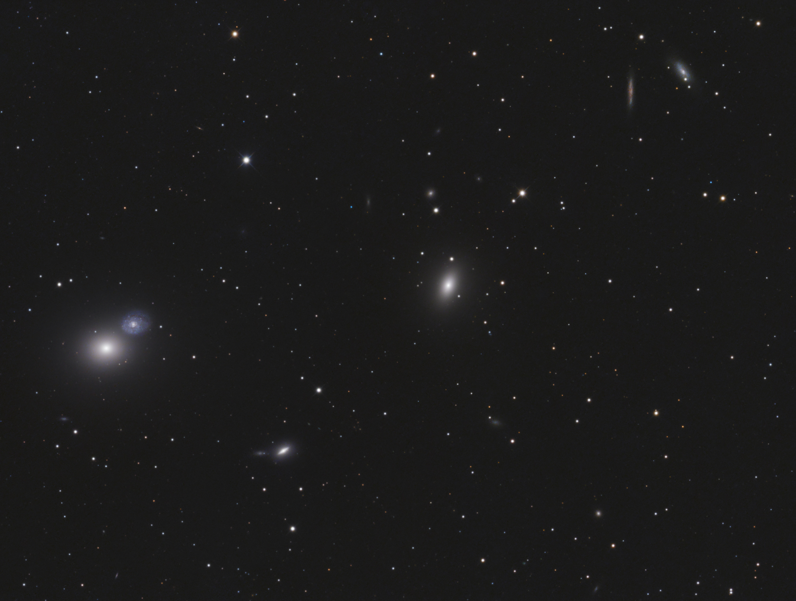 Messier 59 ist eine der größeren elliptischen Galaxien des Virgo-Galaxienhaufens. Sie ist schätzungsweise 52 Millionen Lichtjahre von der Milchstraße entfernt, ihr Durchmesser wird mit etwa 80000 Lichtjahren angegeben. Messier 60 ist ebenso eine elliptische Galaxie und etwa 54 Millionen Lichtjahre von uns entfernt. Sie hat einen Scheibendurchmesser von etwa 120000 Lichtjahren.