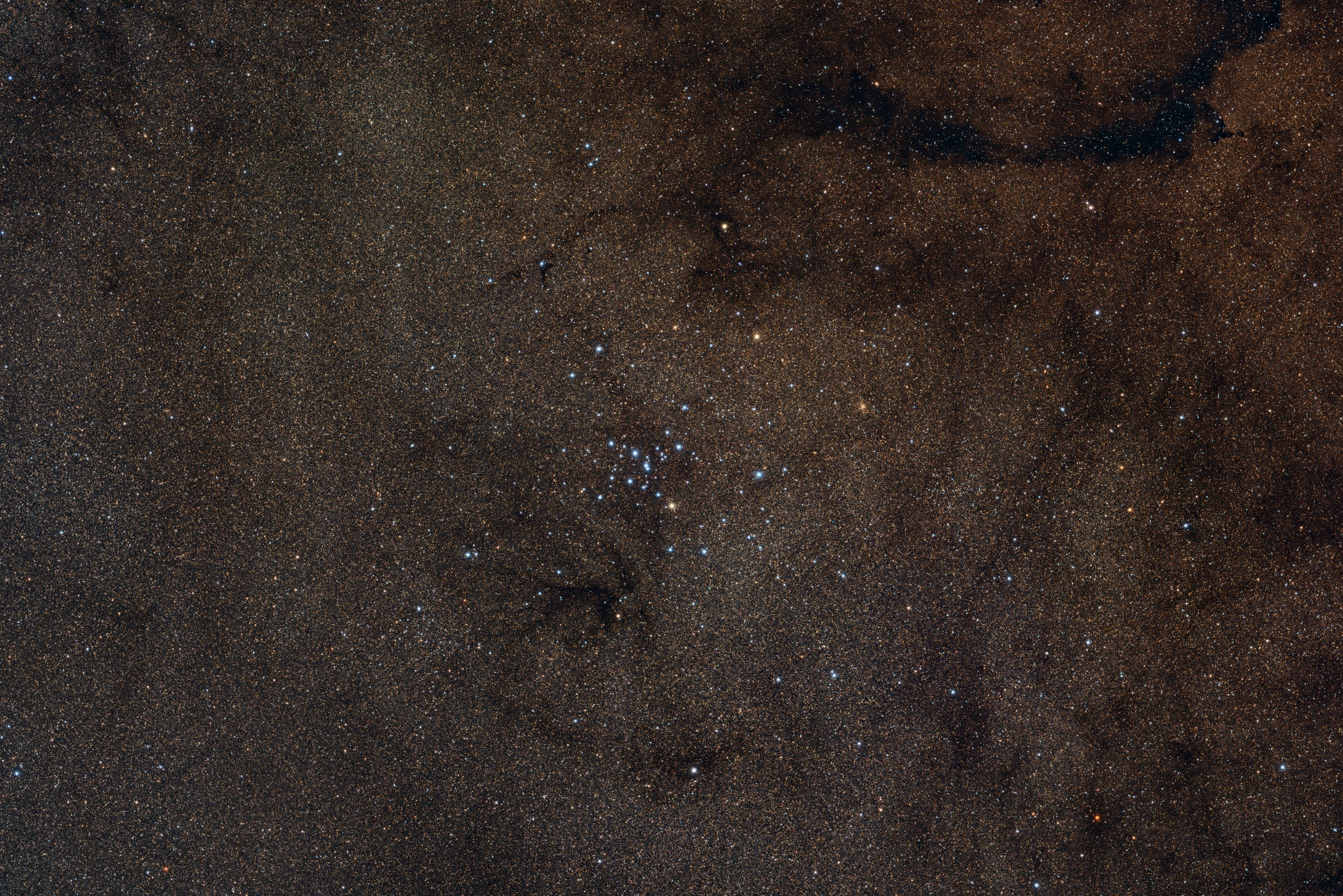 Messier 7 kann zumindest theoretisch noch von Deutschland aus fotografiert werden. Jedoch steht er extrem tief am Horizont. In Namibia stand er im Mai 2023 extrem hoch, nämlich im Zenit. Beste Bedingungen, um dieses Sternenmeer zu fotografieren.