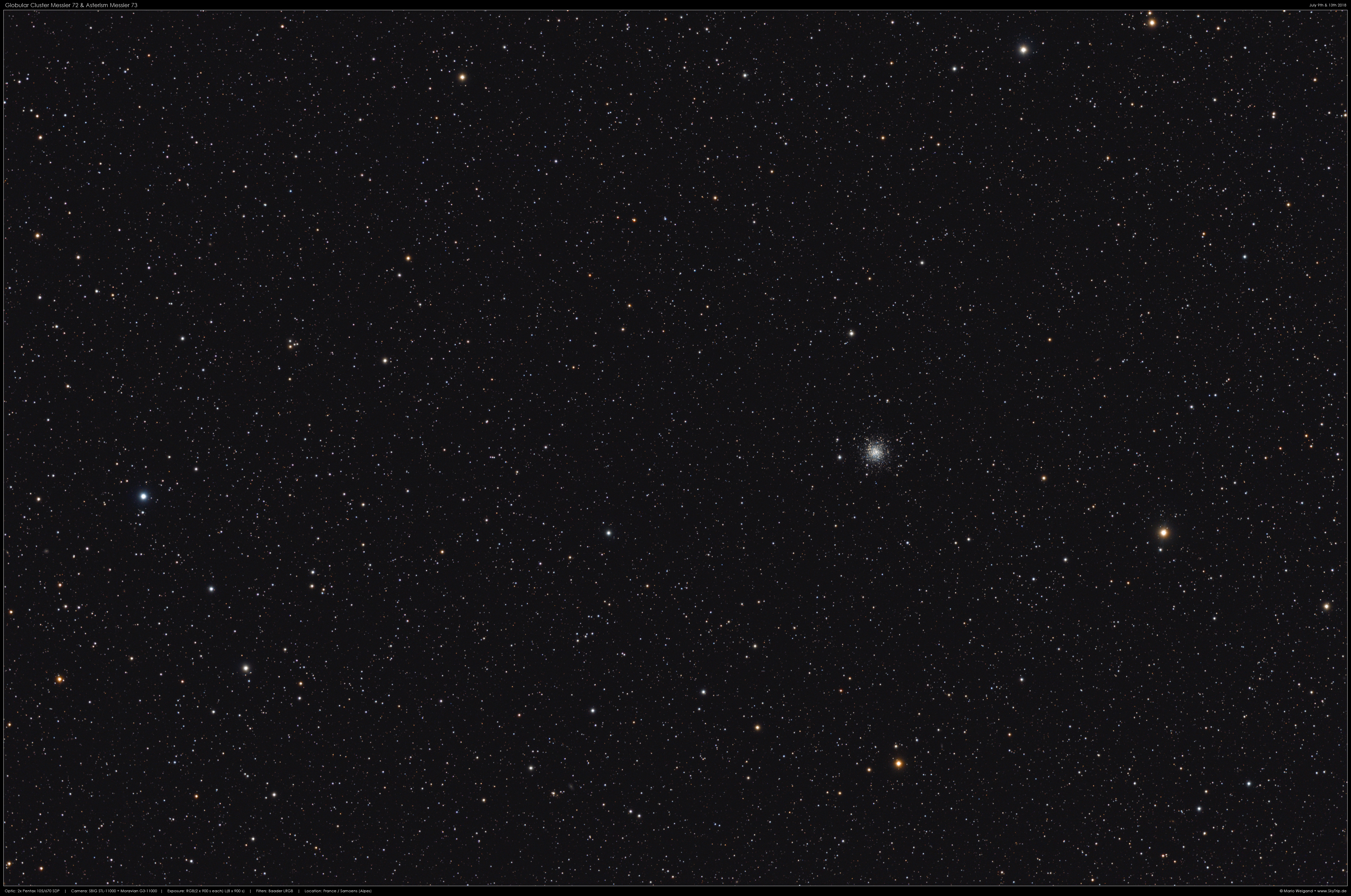 Nur etwa 1,5 Grad östlich des Kugelsternhaufens liegt M73. Dabei handelt es sich wahrscheinlich nicht um einen Sternhaufen oder eine Sterngruppe, sondern lediglich einen Asterismus.