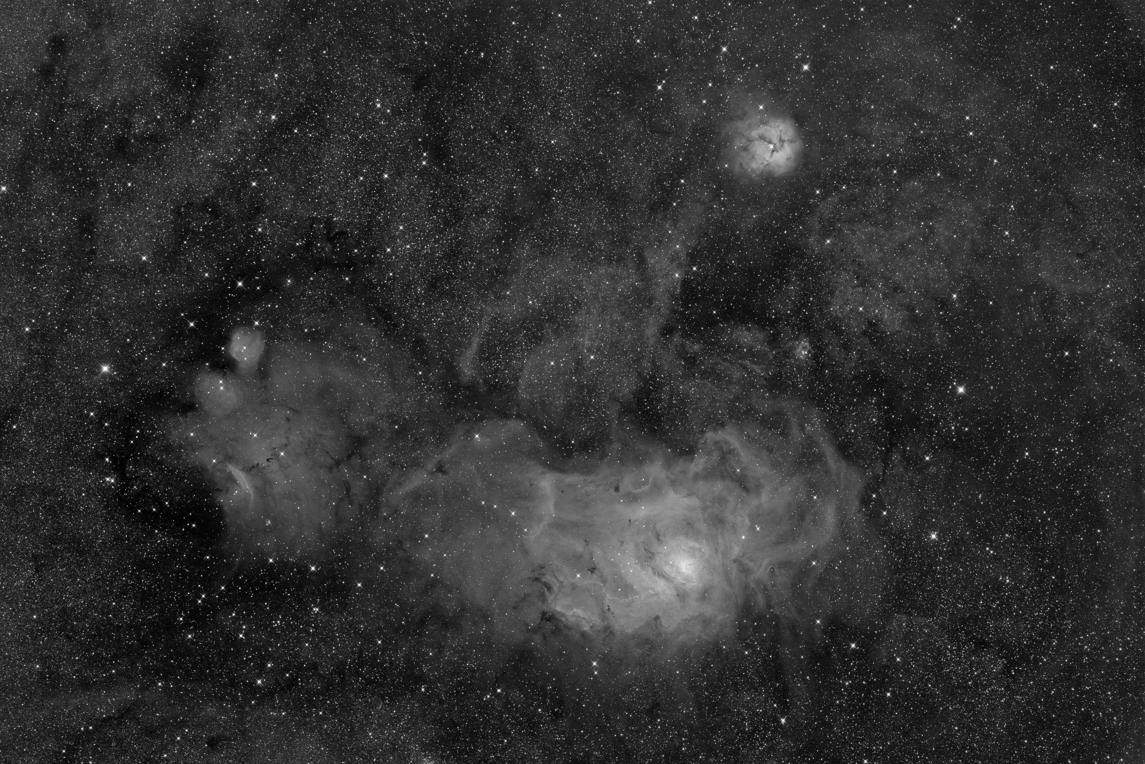 Leserbilder Astronomie: Messier 8 (Lagunennebel) und M20 (Trifidnebel) in H-Alpha