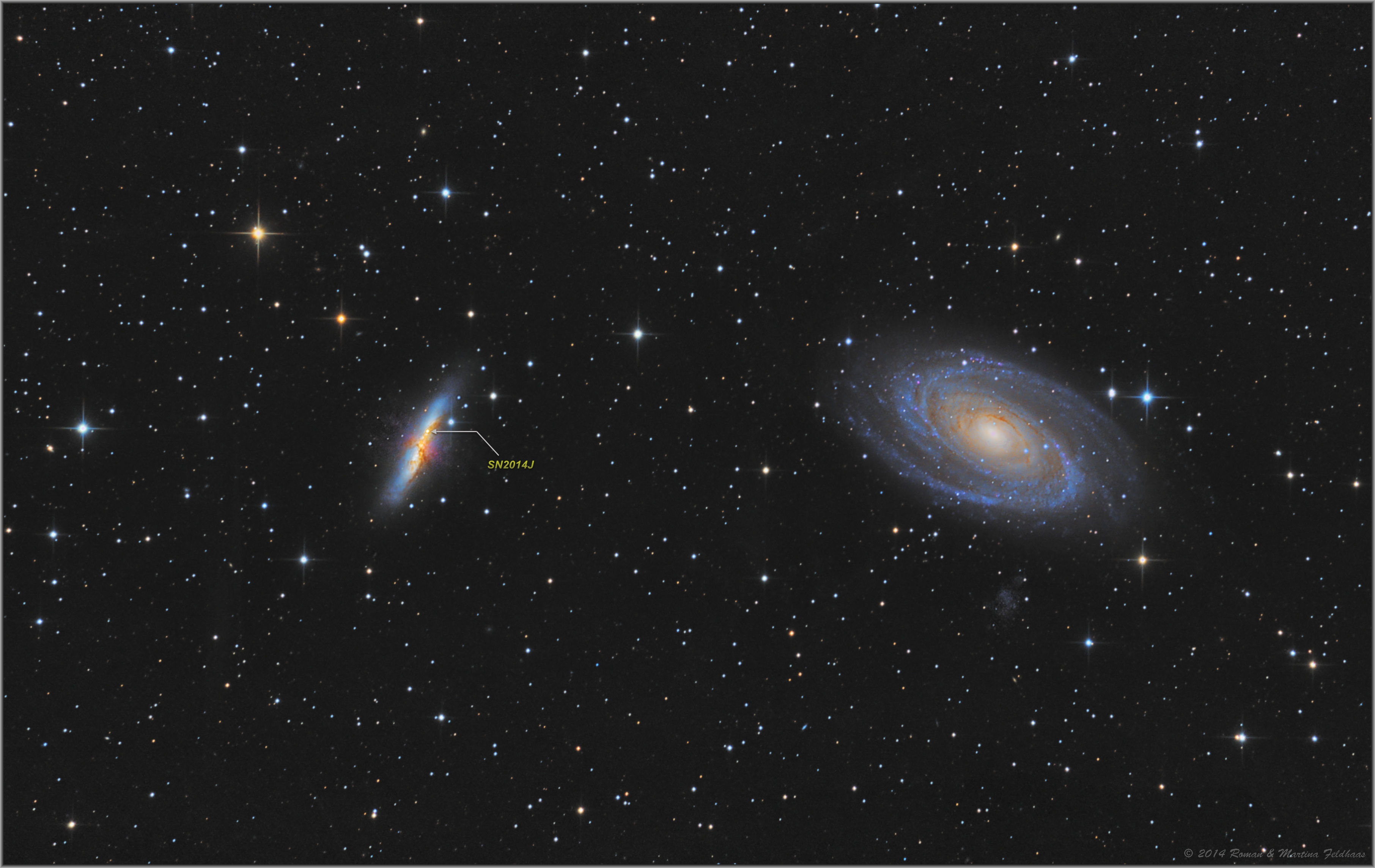 Leserbilder Astronomie: Messier 81 und 82 inklusive Supernova (SN 2014J)