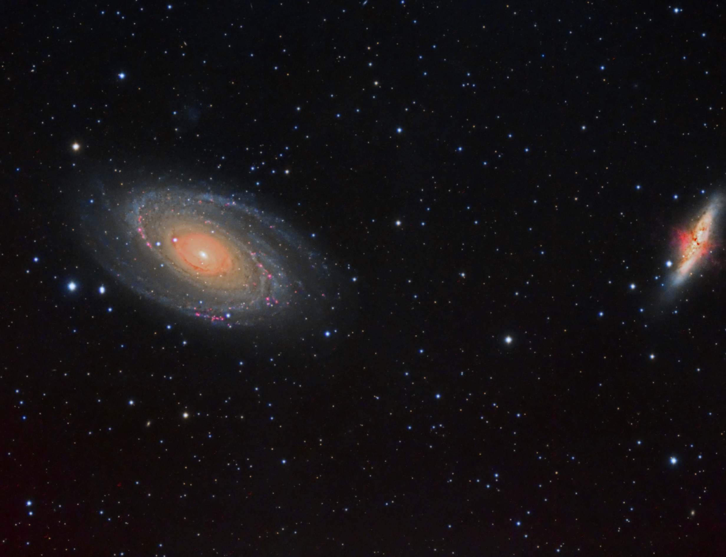 Leserbilder Astronomie: Messier 81 und 82 mit H-Alpha-Gebieten