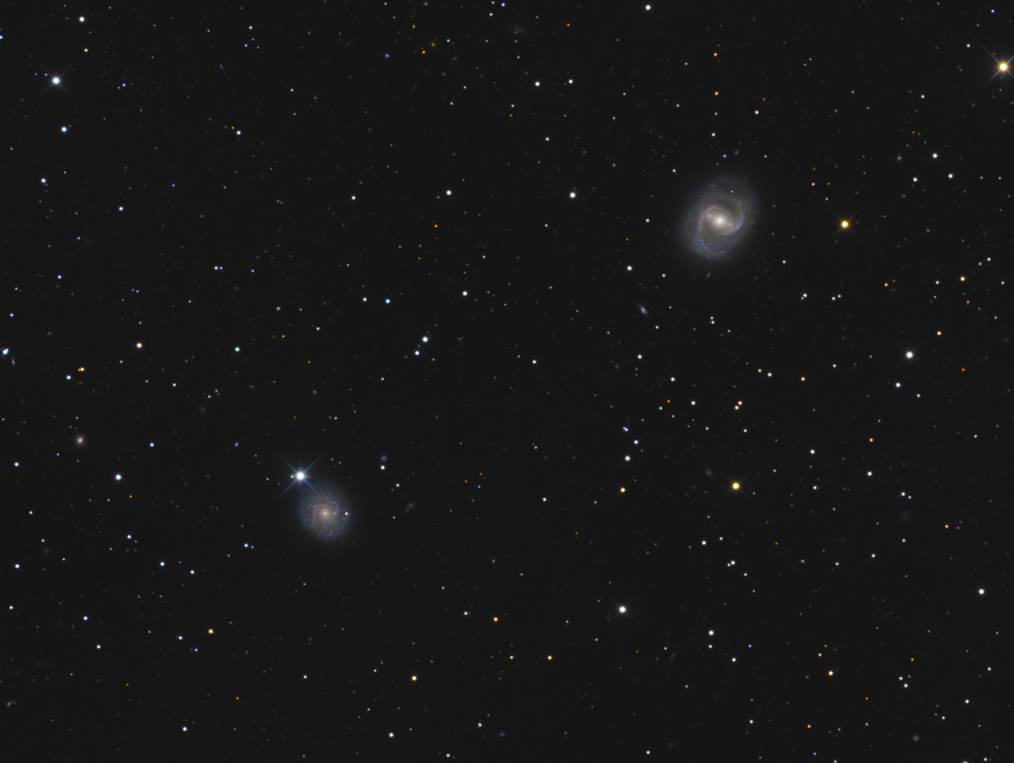 M 91 ist eine helle Balken-Spiralgalaxie im Sternbild Haar der Berenike. Bei einer Entfernung von etwa 20 Millionen Lichtjahren beträgt ihr Durchmesser rund 83000 Lichtjahre. NGC 4571 ist eine spiralförmige Zwerggalaxie mit ausgedehnten Sternentstehungsgebieten. Sie ist etwa 13 Millionen Lichtjahre von uns entfernt, hat einen Durchmesser von ca 15000 Lichtjahren und gehört zum Virgo-Galaxienhaufen.