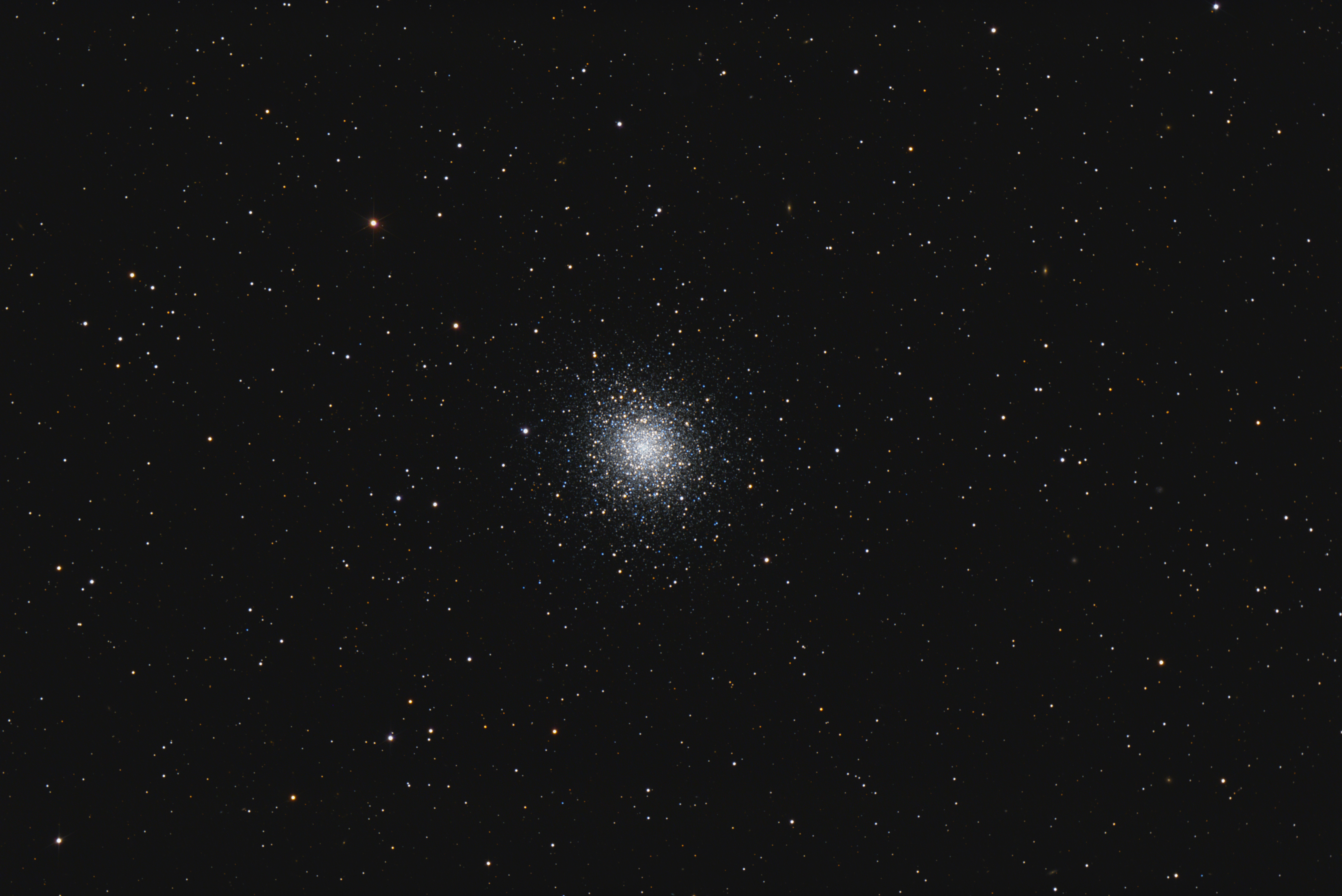 Der Kugelsternhaufen Messier 92 im Sternbild Herkules ist von uns rund 27000 Lichtjahre entfernt, ist 6,3 mag hell und gehört zu den ältesten bekannten Kugelsternhaufen.