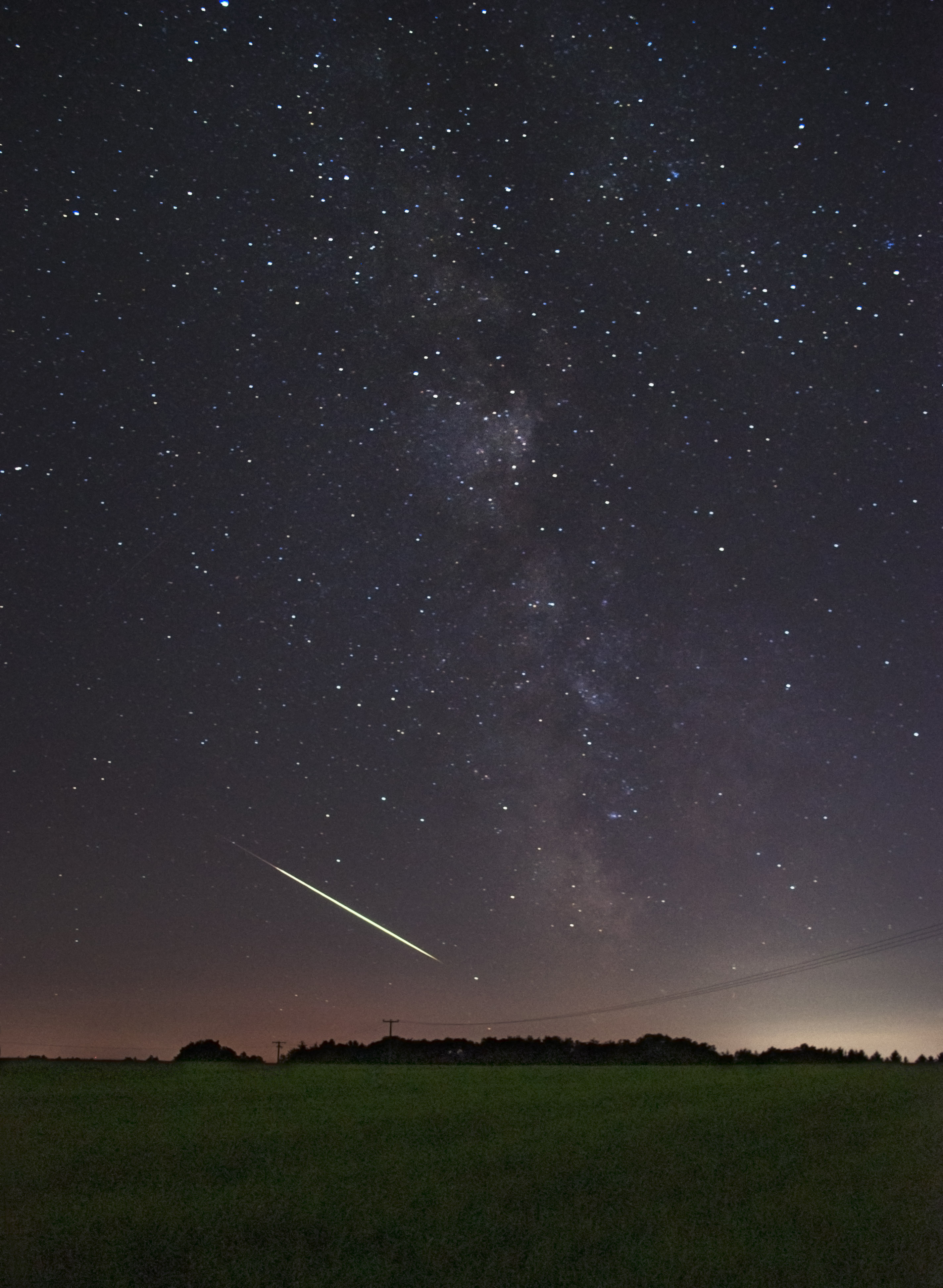 Eigentlich wollte ich nur die herrliche Milchstraße und das Sternbild Schütze aufnehmen, als plötzlich dieser Meteor durchs Bild zischte und allen anderen Objekten am Himmel die Show stahl.