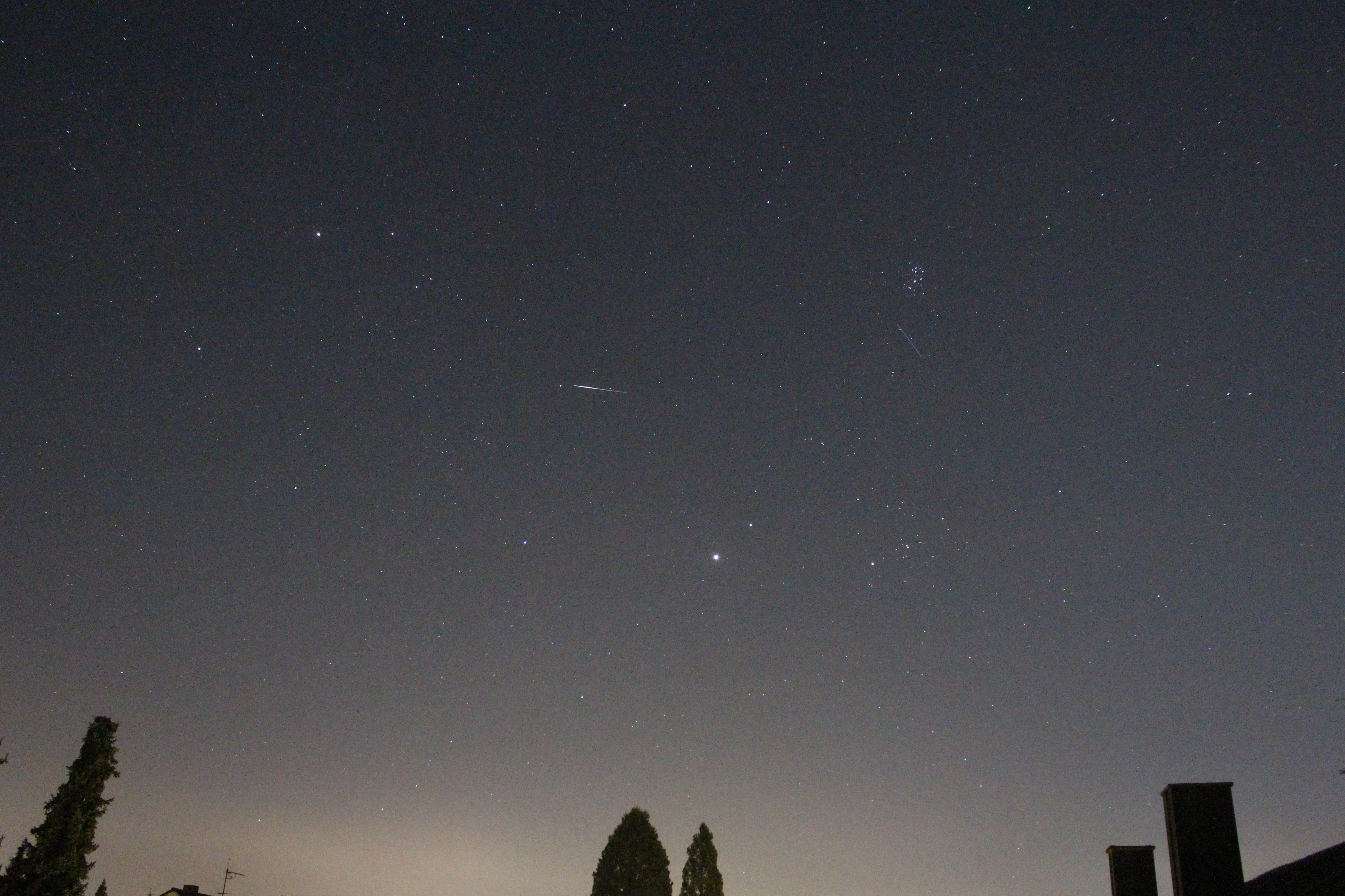 Meteor im Stier, aufgenommen im Zuge der Erstellung einer fotografischen Sequenz des östlichen Sternenhimmels.