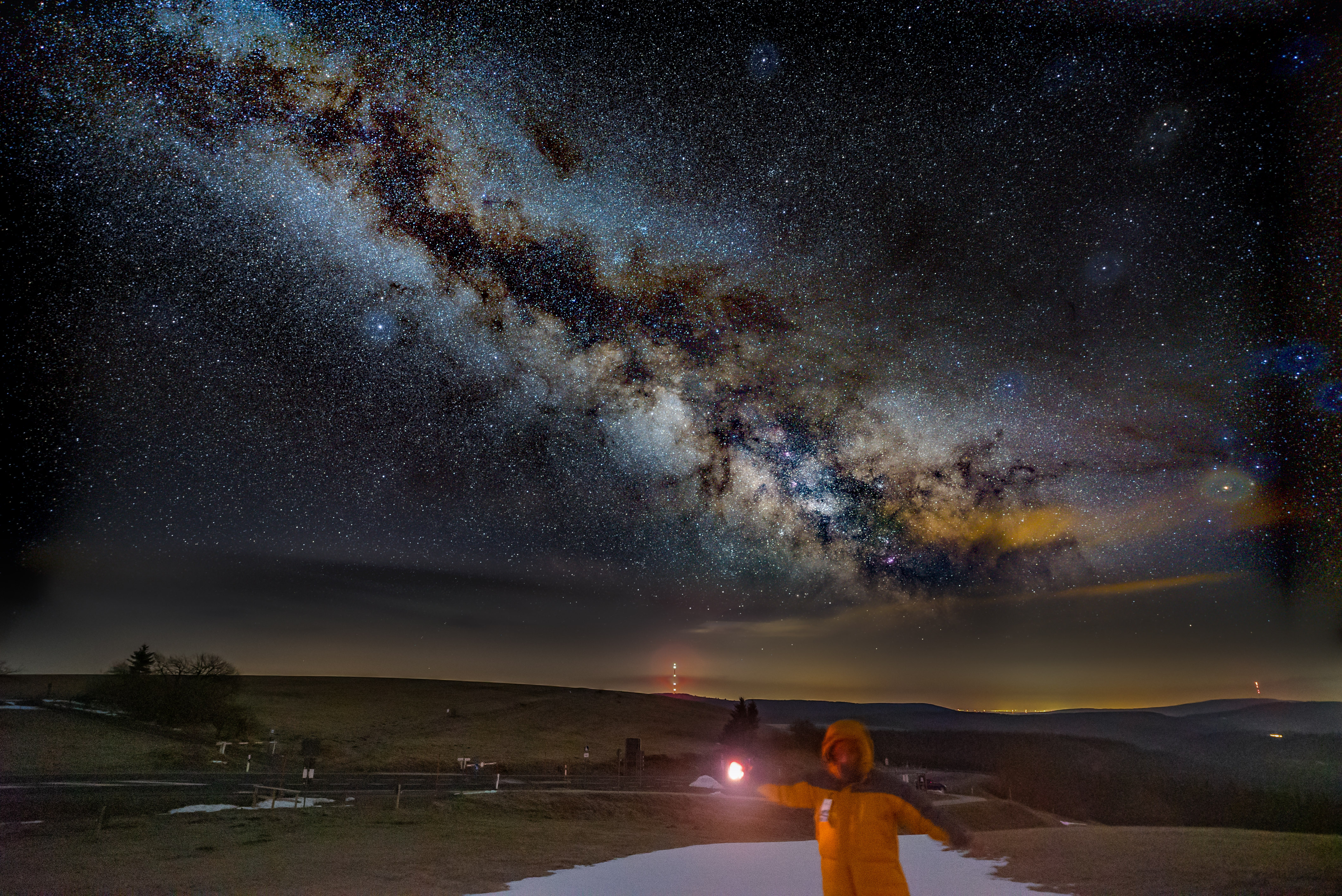 Milchstraße an der Wasserkuppe (Komposit). Sony A7s, 20 mm, 138 x 10 sec. ISO 6400, gestackt mit Sequator. Das Objektiv ist während der Belichtung schön angelaufen mit einer leichten Eisschicht.