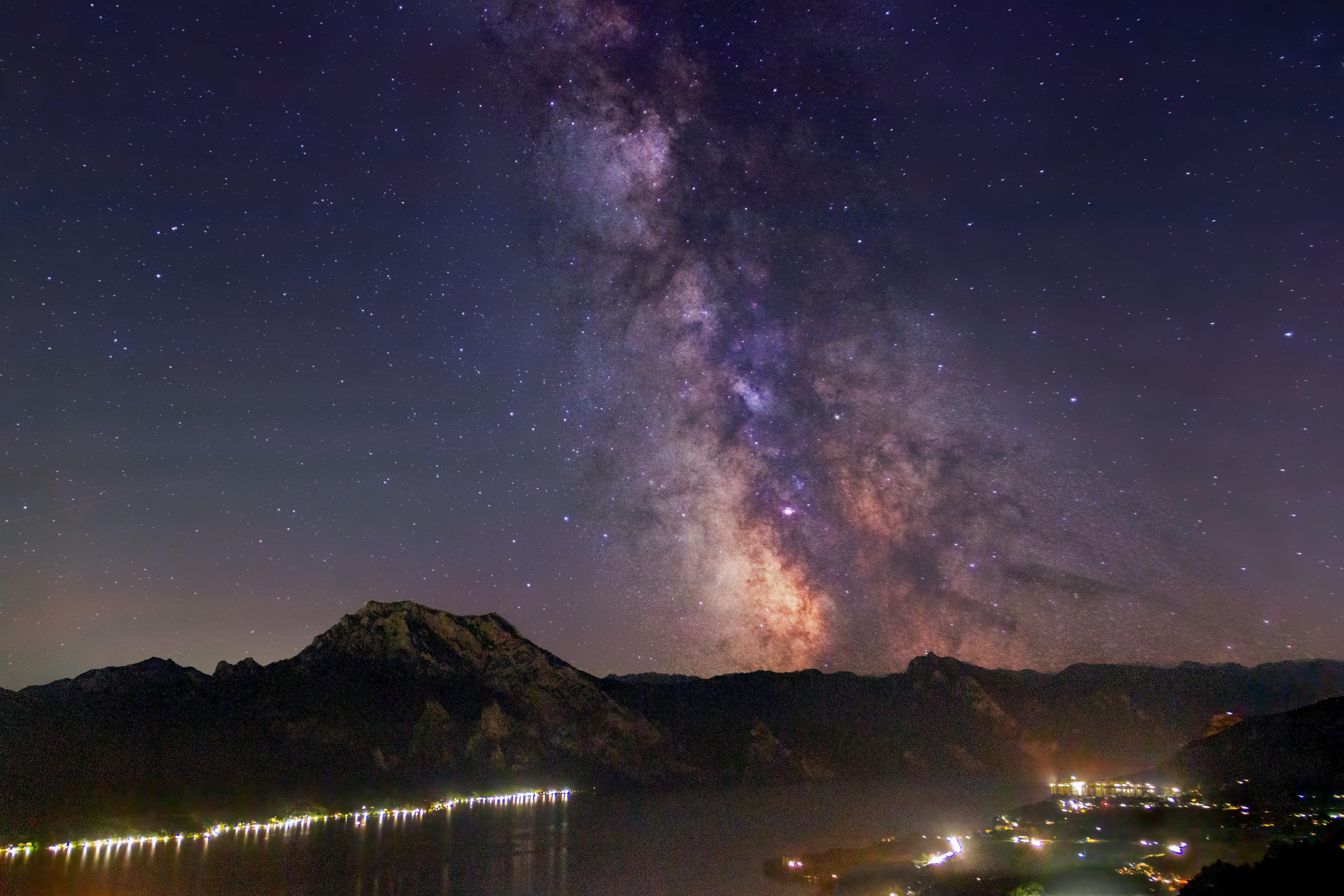 Aufgenommen vom 884 m hohen Gmundnerberg bietet dieser Spot einen unbeschreiblichen Ausblick über den Traunsee und den Traunstein. Zu nächtlicher Stunde ein perfekter Ort, um die Milchstraße zu fotografieren und Perseiden zu beobachten.