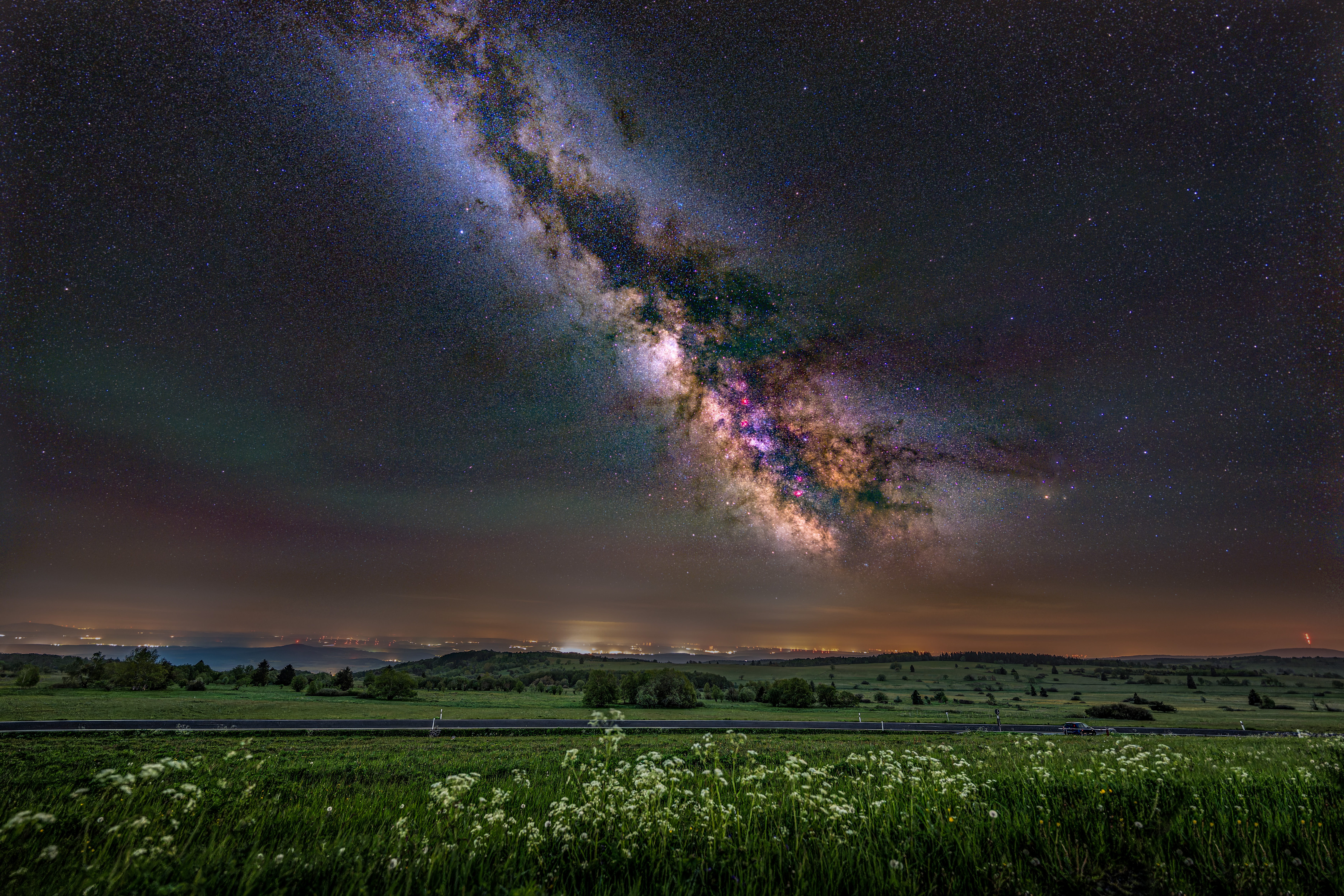 Milchstraße, aufgenommen letzten Mai in der Hochrhön. Sony A7iv mit Sony 14 mm, f1,8, ISO 12800; 75 x 8 sec. belichtet, Vordergrund extra belichtet und überblendet, gestackt mit Sequator und bearbeitet in Photoshop.