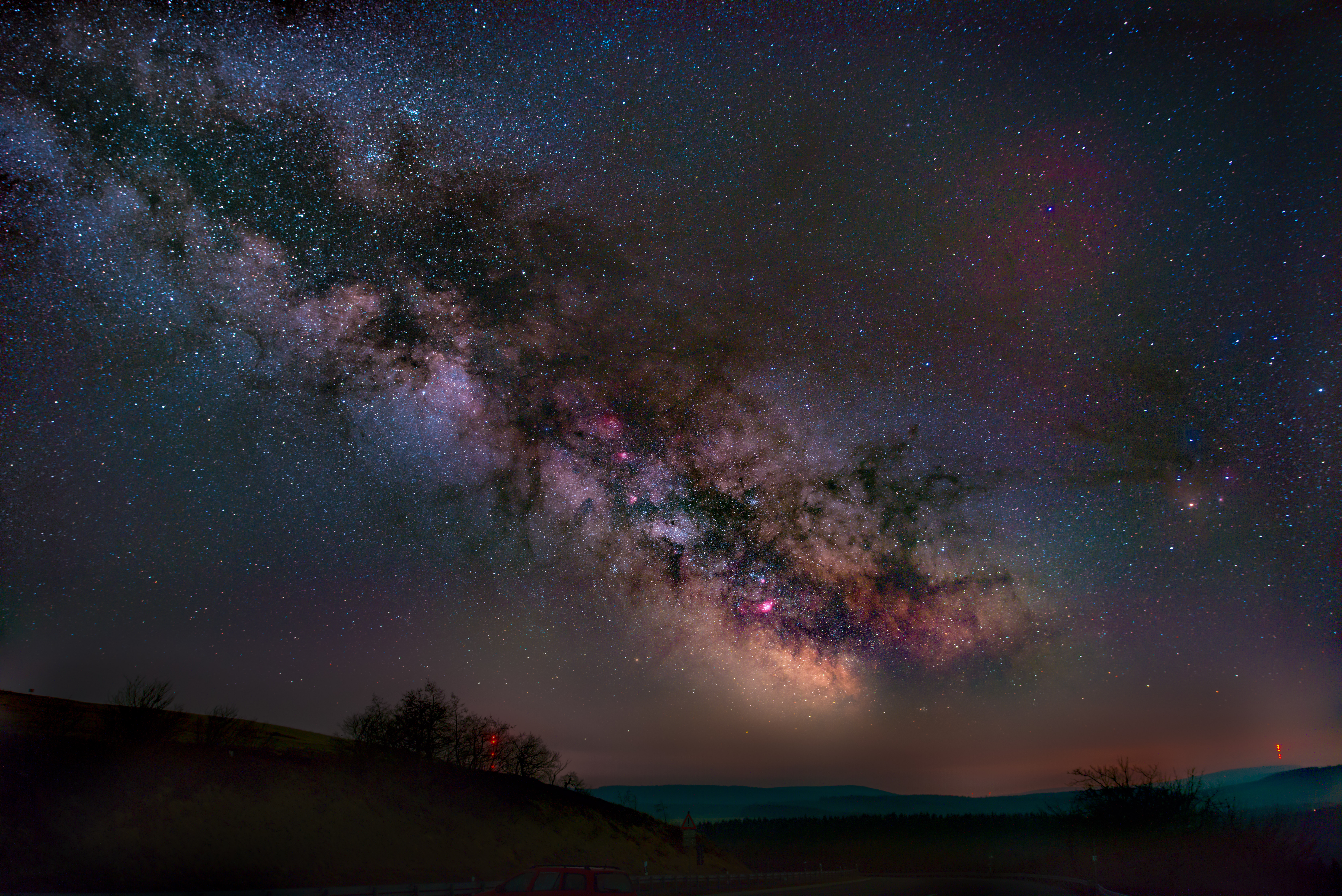 Die erste Sommermilchstraße dieses Jahr fotografiert am Parkplatz Fuldaquelle in der Rhön.