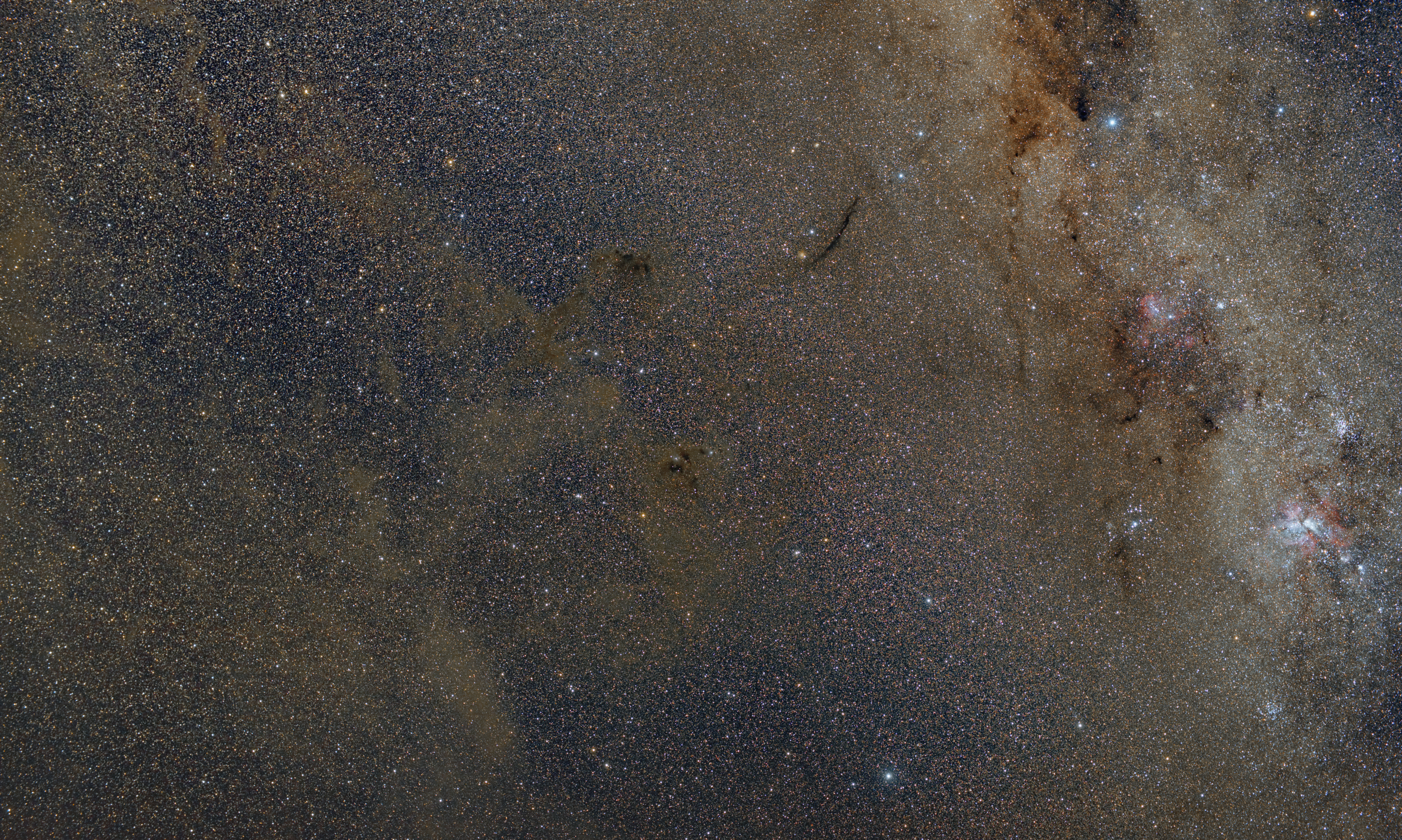 Die Aufnahme entstand im Juli 2017 auf der Kiripotib-Gästefarm in Namibia. Das Bild zeigt den galaktischen Zirrus zwischen dem Himmelssüdpol und der Milchstraße in den Sternbildern Chamäleon und Fliege.