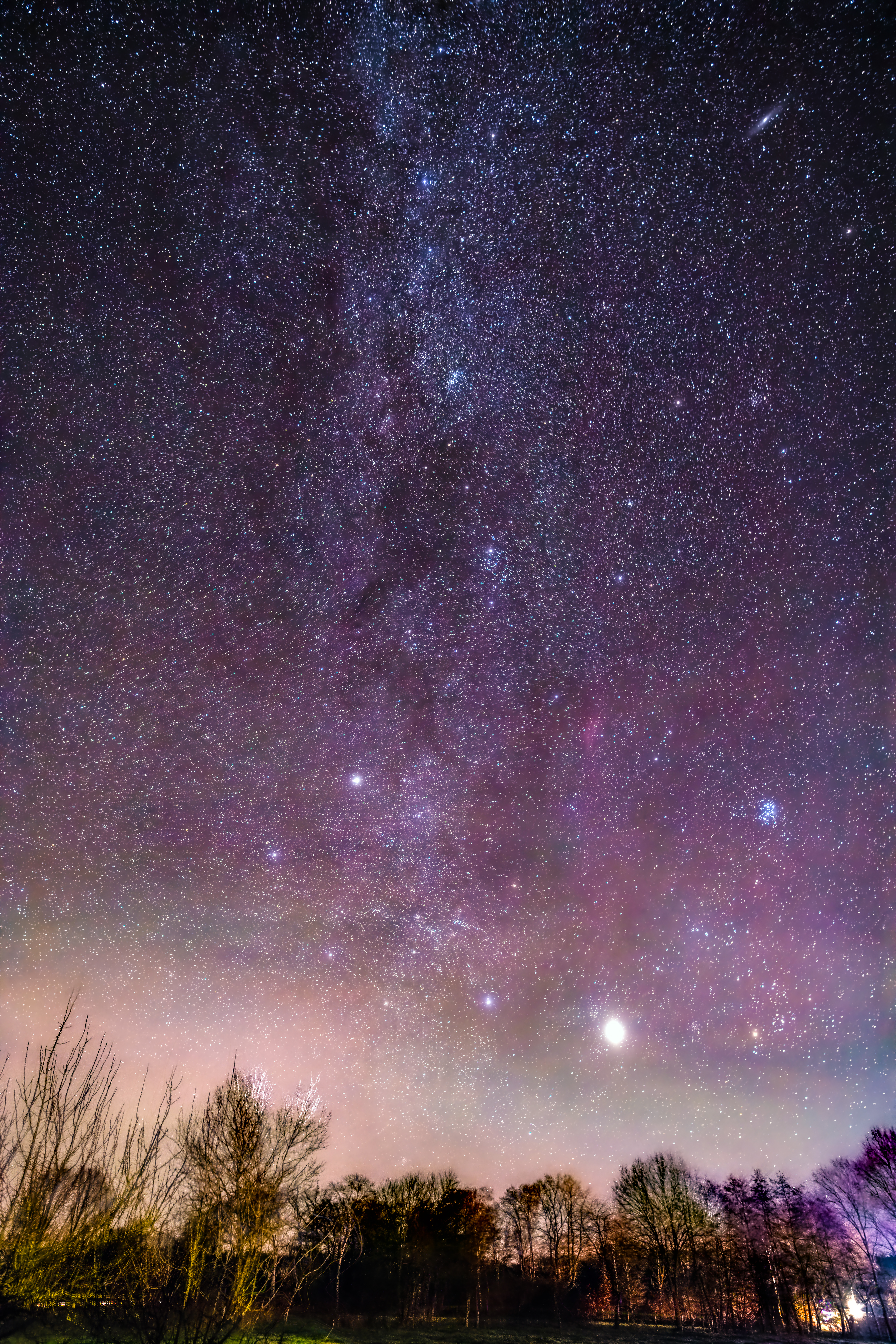 Osthimmel mit Andromeda, Jupiter, Plejaden und Kaliforniennebel