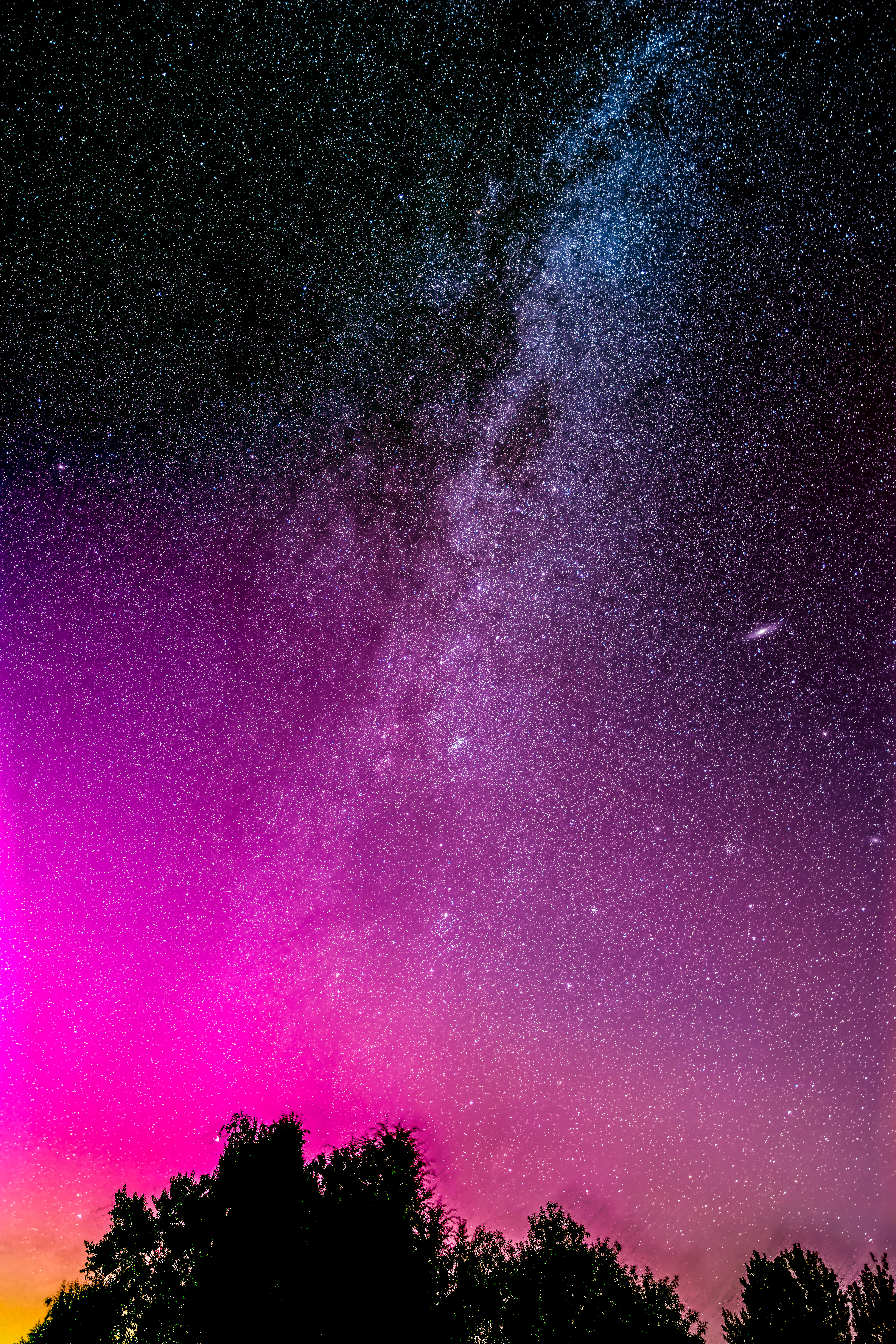 Milchstraße mit Andromeda. Die Perseiden hatten bei dem Polarlicht in der Nacht vom 12. zum 13. August keine Chance! Das Polarlicht war mit bloßem Auge zu sehen.