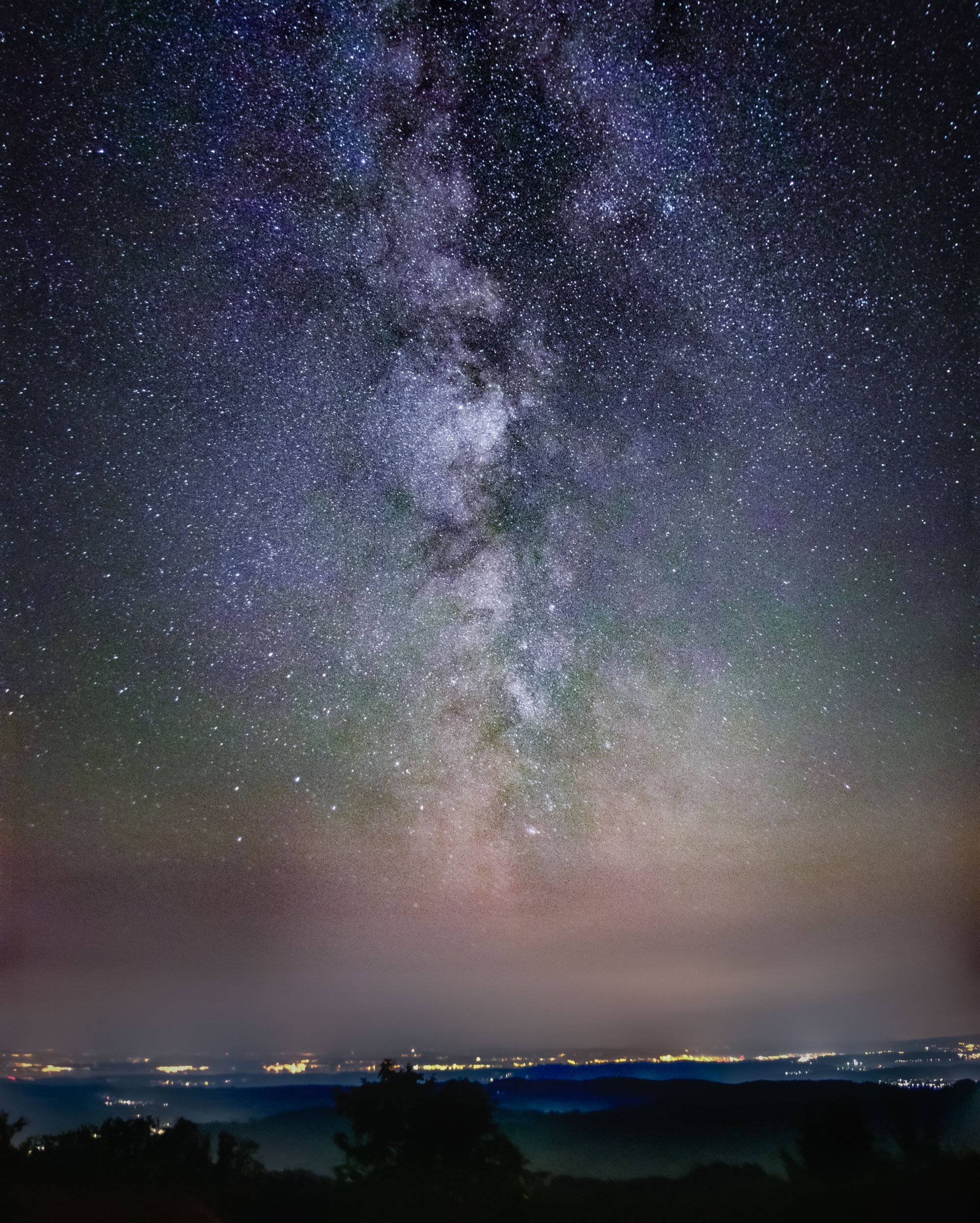 Zentrum der Milchstraße über dem lichtverschmutzten Bodensee.