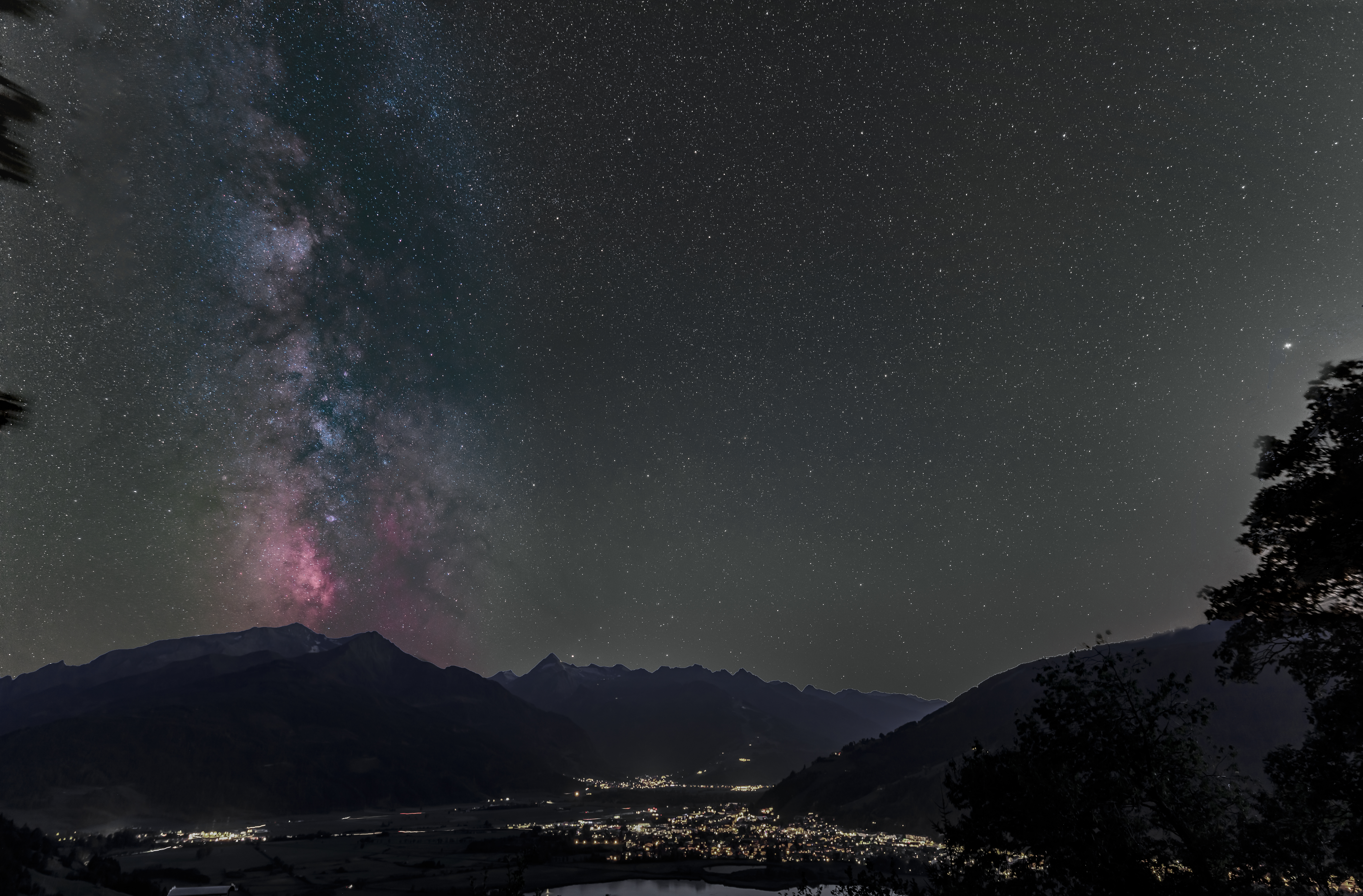 Hoch über dem Zeller See in Thumersbach konnte ich die Milchstraße über dem Imbachhorn und dem Hohen Dock, aufnehmen. 10 Bilder x 110 Sec.