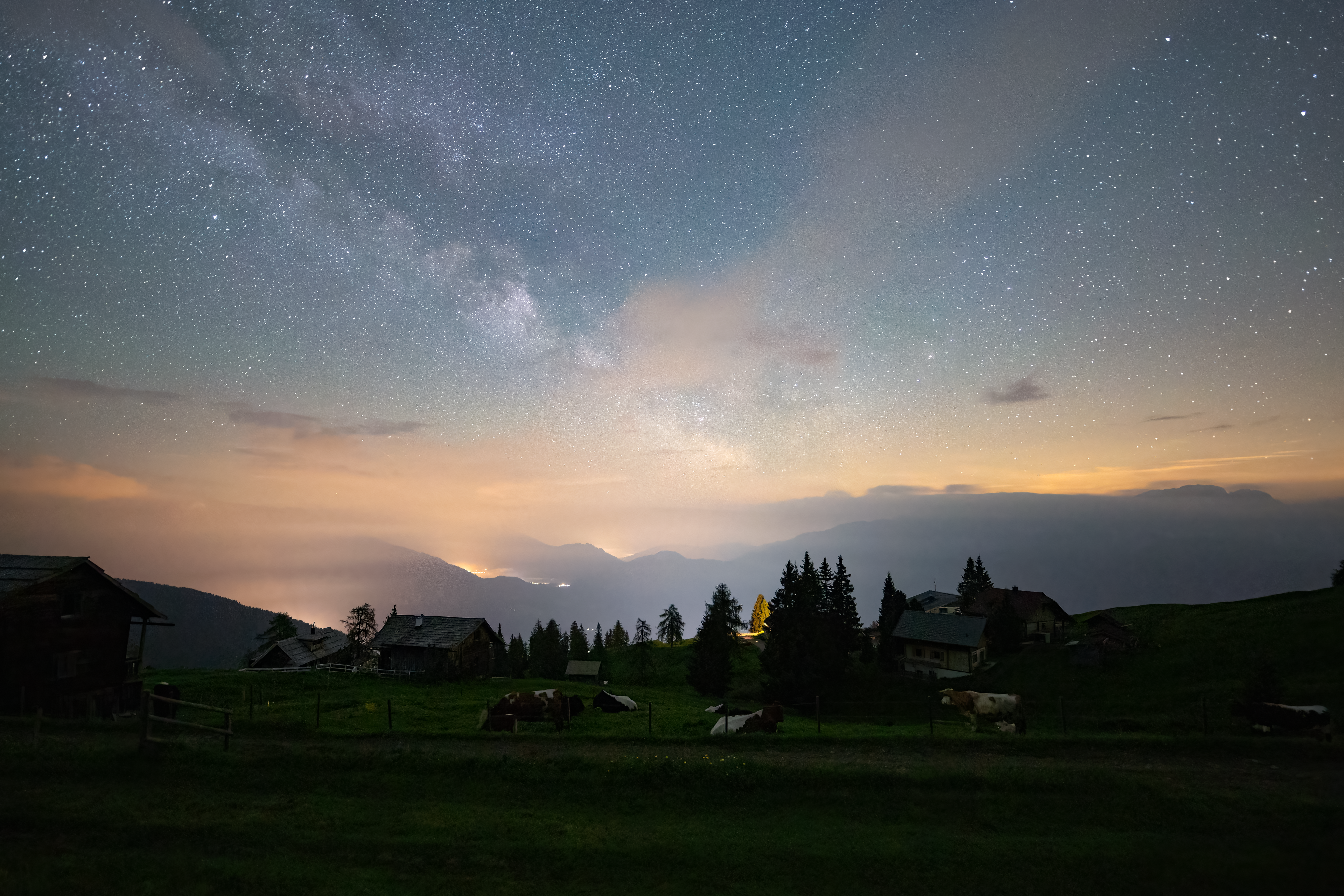 Aufsteigender Nebel aus dem Tal und Durchzug mehrerer Wolkenfelder machten Deep Sky Aufnahmen zwar unmöglich, aber kurze klare Momente ermöglichten den Blick auf die Milchstraße. Die Aufnahme entstand auf etwa 1700 Meter Höhe auf der Emberger Alm (Kärnten, Österreich) am 26. Mai 2022. Die Lichtstimmung durch die Nebelfelder einfach grandios.