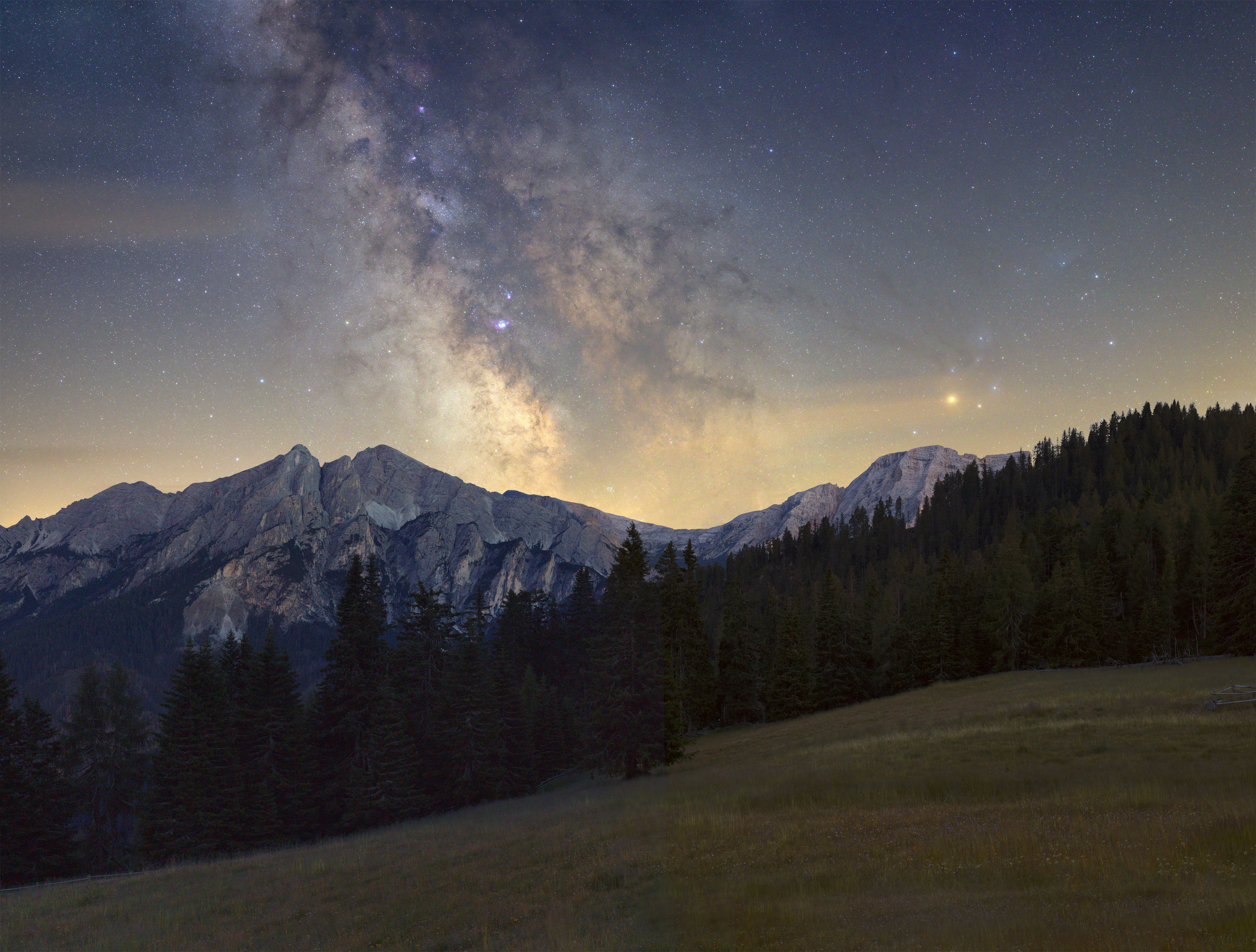 Der Umstand, dass eine Stunde vor Entstehung dieser Aufnahme der Himmel gänzlich bedeckt war, zeigt, dass sich Hartnäckigkeit auszahlt. Milchstraße mit Skorpion über den Pragser Bergen in Südtirol.