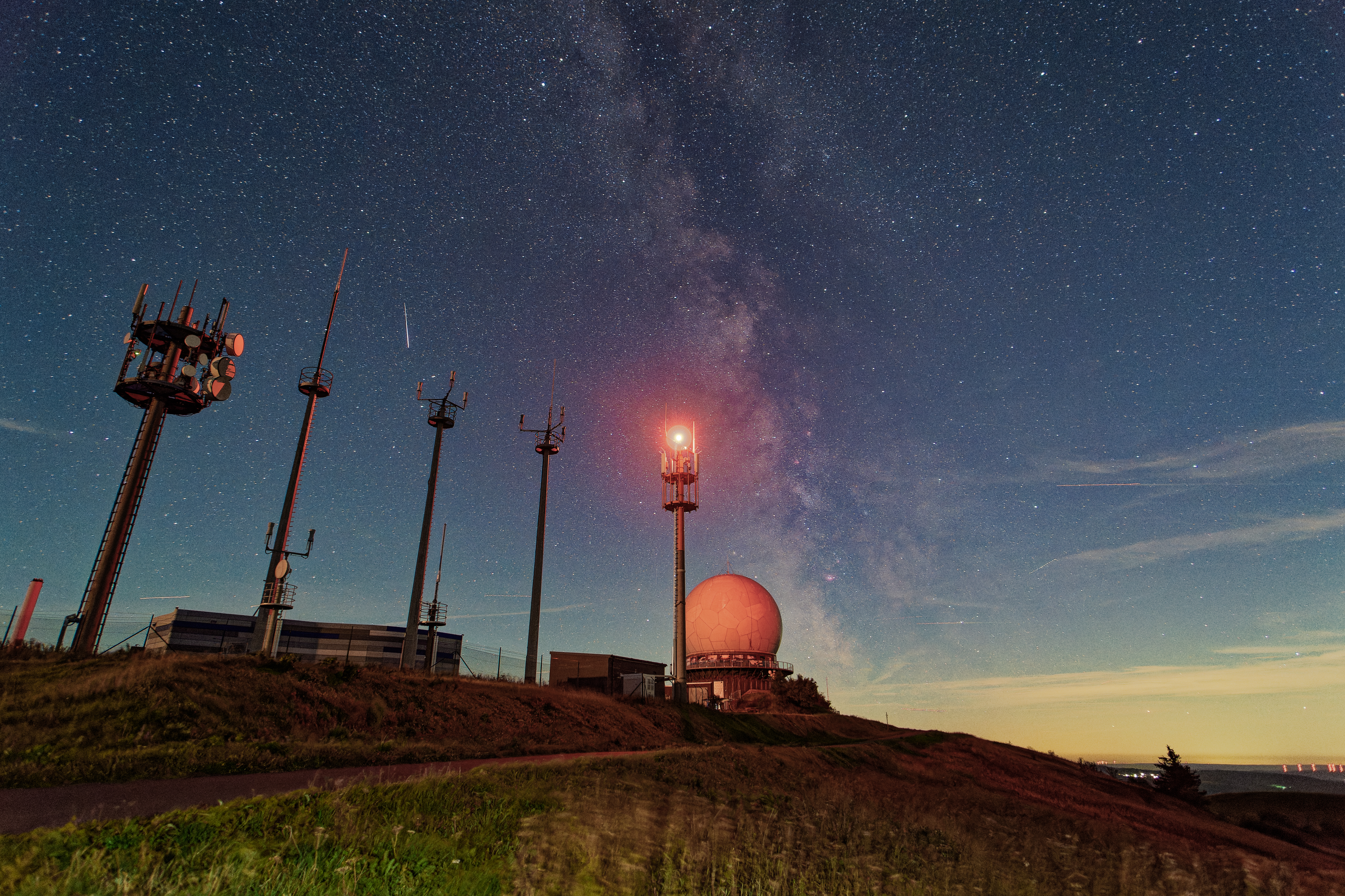 Das vorliegende Foto zeigt die Milchstraße und einen zufällig eingefangenen Meteor über der Wasserkuppe in der Rhön. Es ist eine Einzelbelichtung. Als Vordergrundmotiv habe ich das berühmte Radom gewählt. Die Wiese ganz vorne im Bild habe ich durch kurzes Schwenken einer Taschenlampe aufgehellt. Die Bewegungsunschärfe der Pflanzen zeigt, dass es sehr windig war, aber das Frieren hat sich aus meiner Sicht gelohnt.
