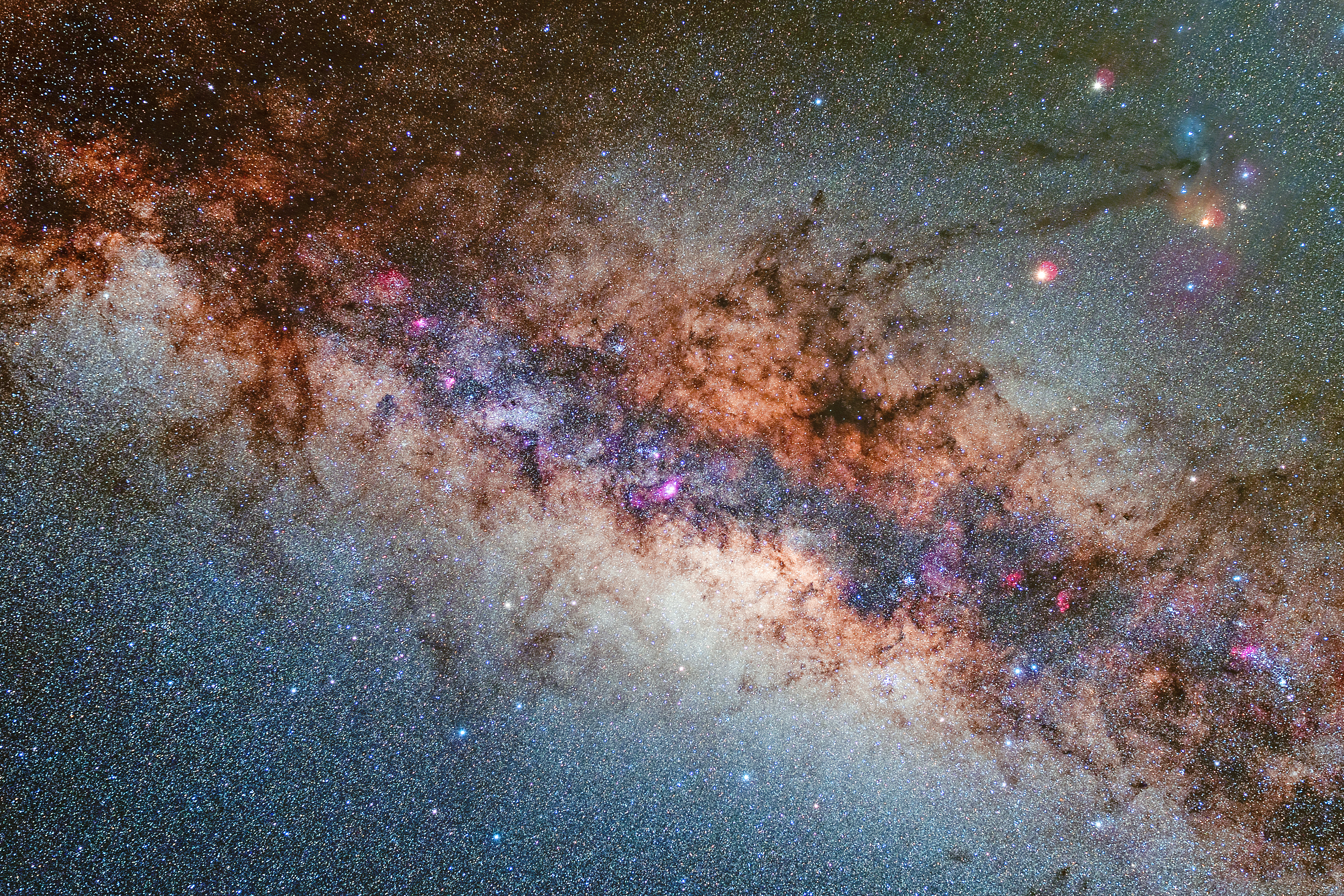 Leserbilder Astronomie: Milchstraßenzentrum mit Planeten Mars und Saturn