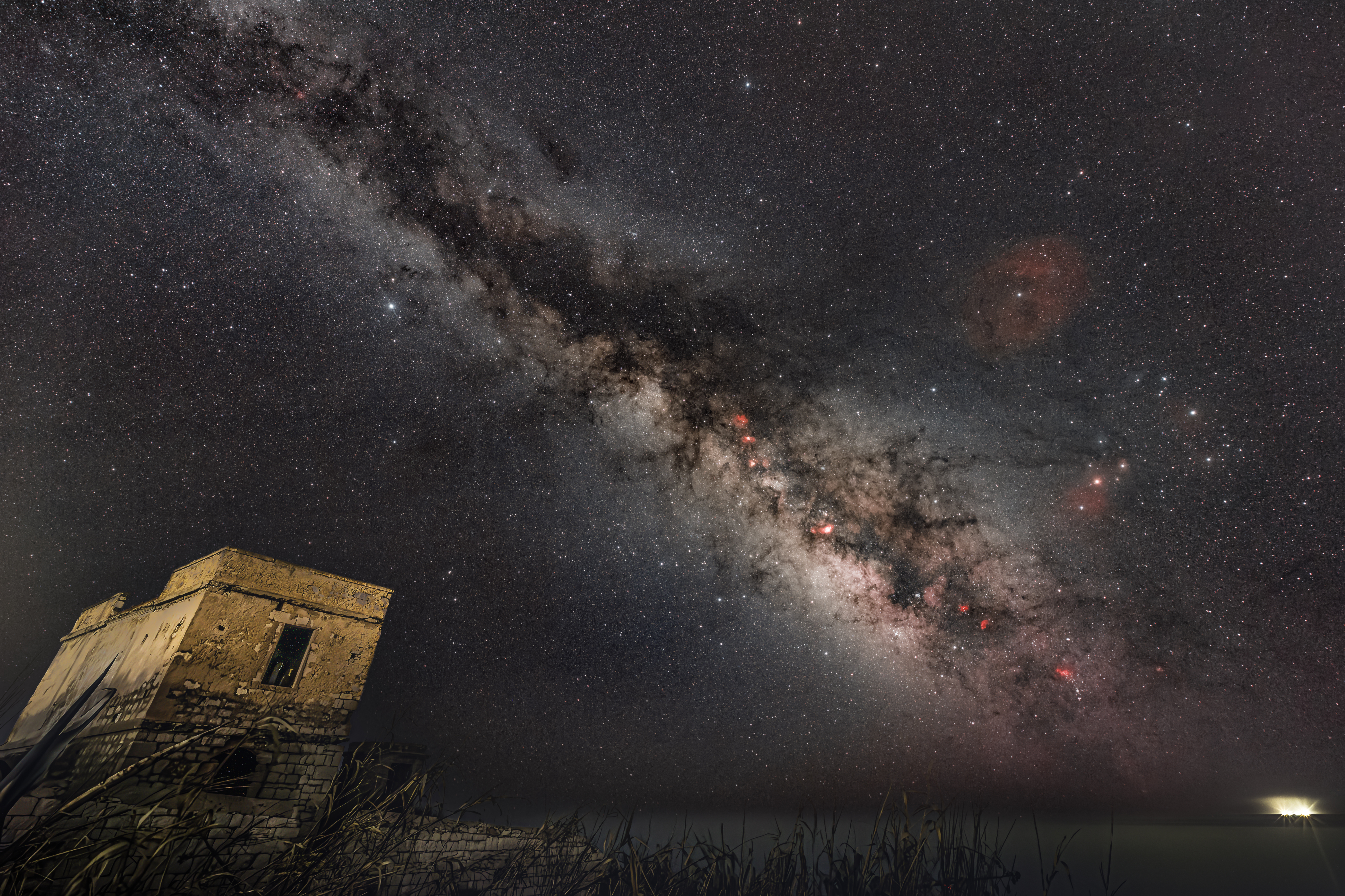 | Belichtungszeit | LANDSCAPE: CANON EOS R 7Artisans 14 mm. lens @ f/5,6 N° 51 15 sec-exposure @ ISO 3200 MILKY WAY: CANON EOS RA SIGMA DG 14 mm. lens f/1,8 @ f/3,2 N° 38 80 sec-exposure @ ISO 6400 Optolong L-eNh |