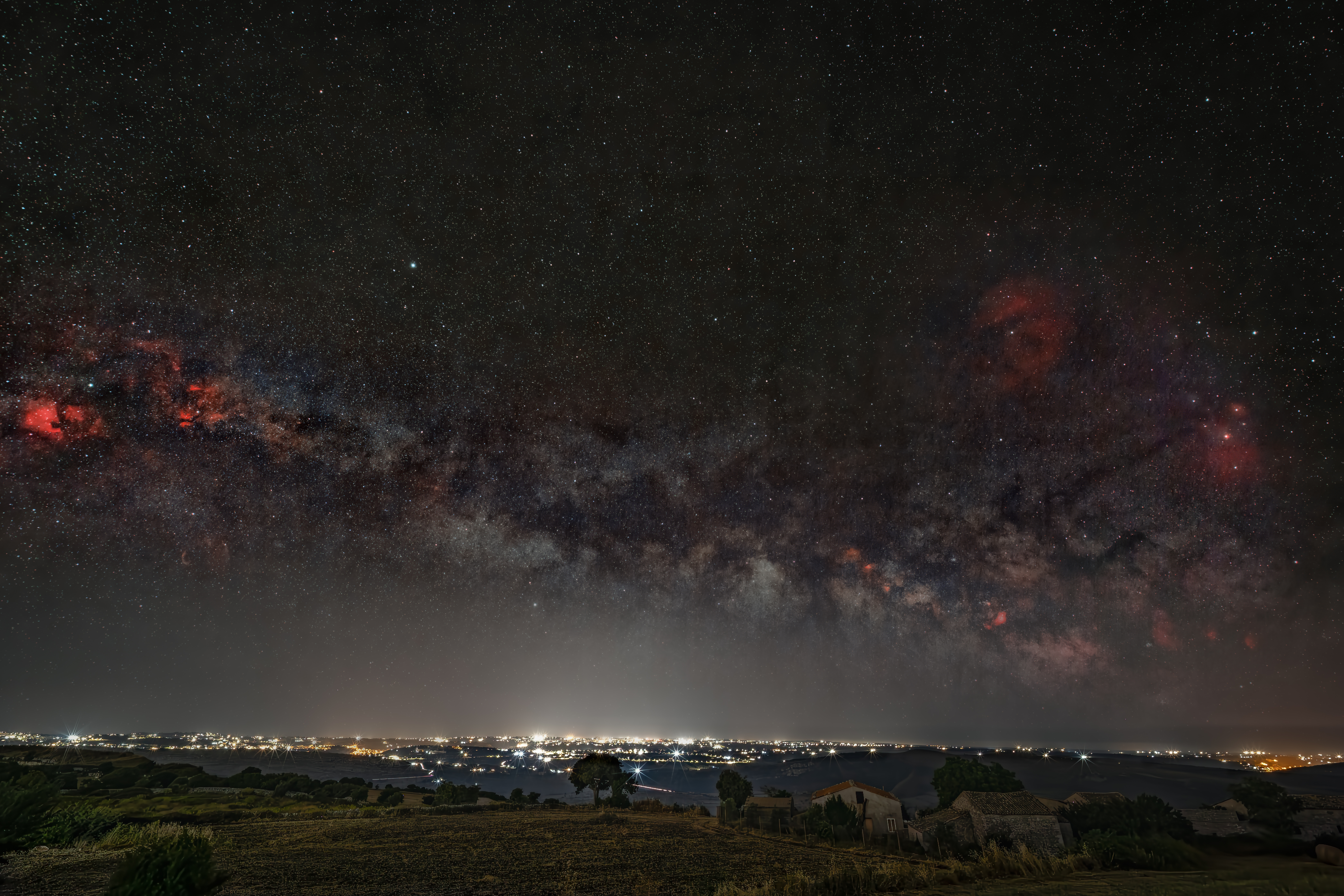 Milky way above the sicilian coast. The technique used to obtain this image was to photograph the same area of the sky at the same time with two cameras (one of which was modified for astronomy and mounted on an astro tracker) with the same focal length.