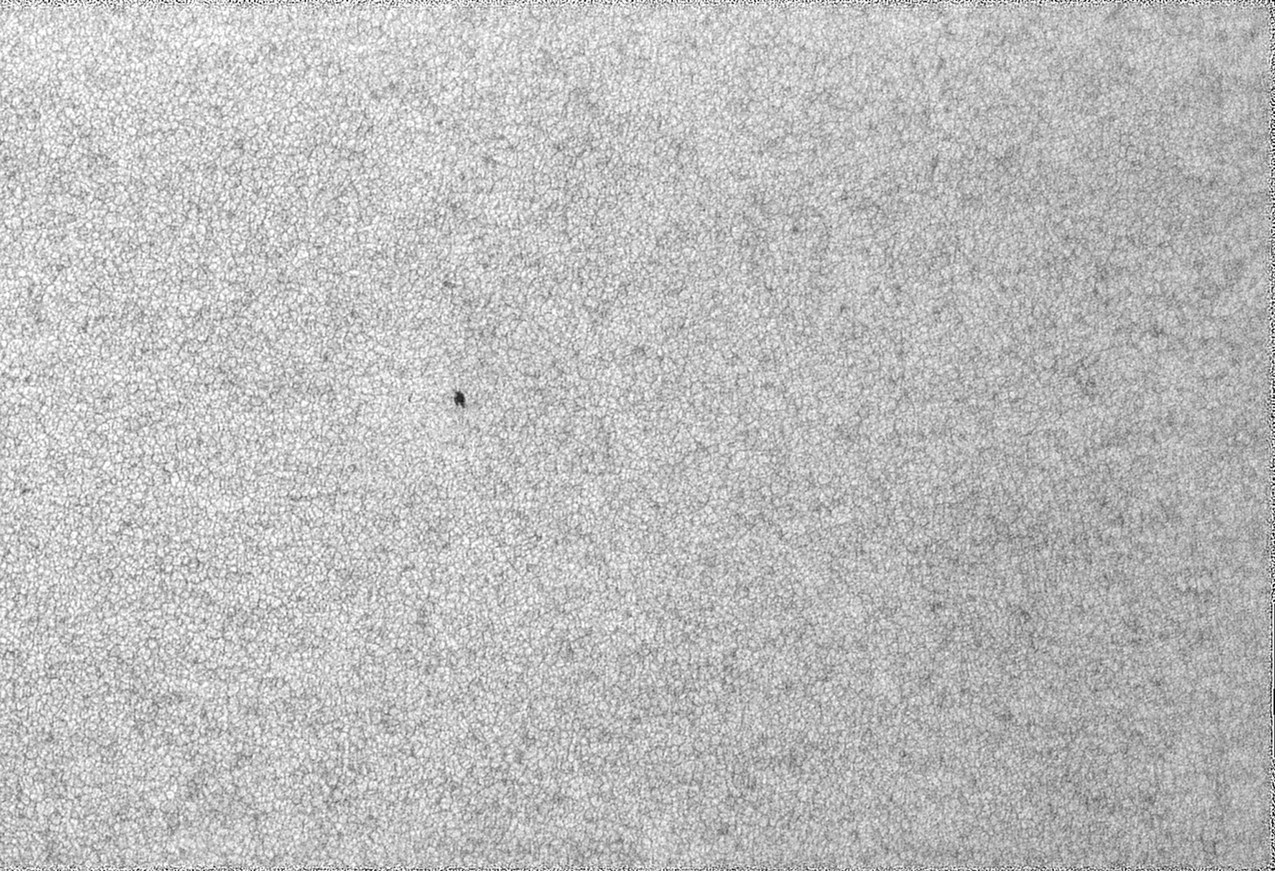 Angeregt durch das tolle Bild von Olaf (kleine SF-Gruppe vom 15. April), habe ich mich heute auf die Suche danach begeben. Es scheint lediglich ein "Stippchen" übrig geblieben zu sein. Das aktuelle Bild der Nasa (Soho) verzeichnet keinen Flecken oder eine Nummer. Trotz der Schleierwolken kam die Granulation doch noch gut durch - das "Stippchen" ist die einzige Runzel bei einer sonst fleckenlosen Sonne.