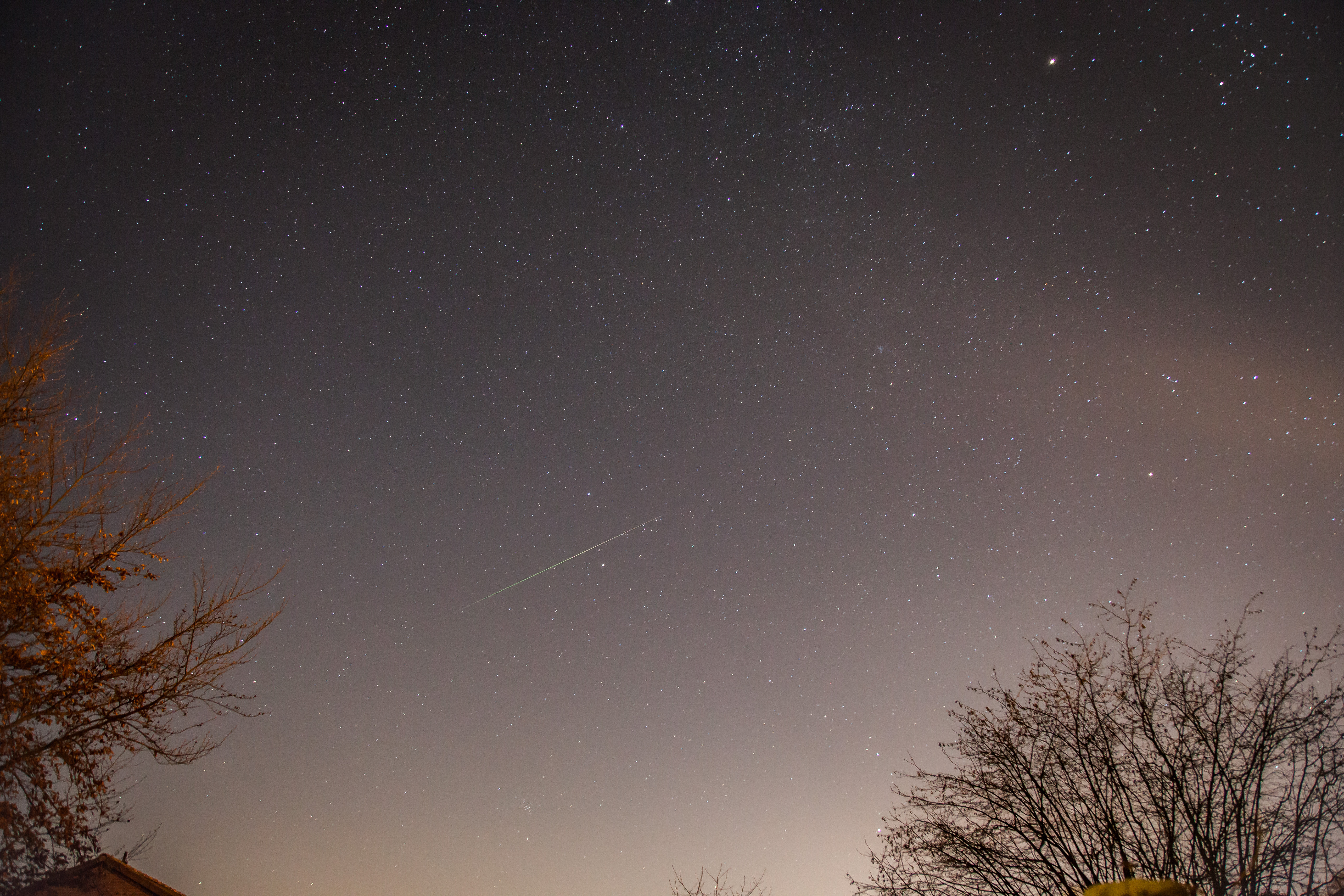 Mitten durch das Sternbild der Zwillinge flog eine helle Geminide.