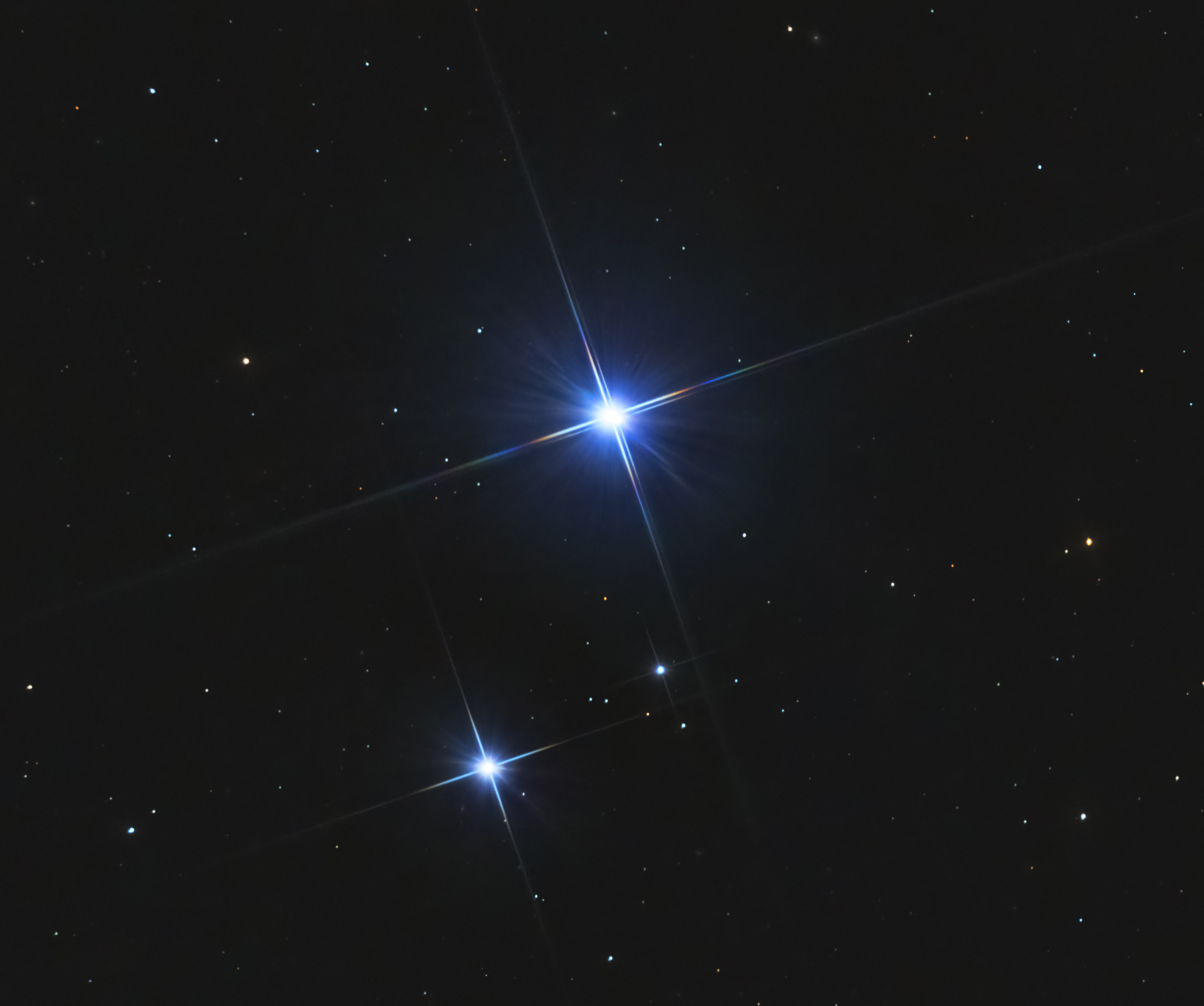 Mizar und Alkor sind zwei Sterne, die ein mit bloßem Auge deutlich sichtbares Doppelsternsystem bilden und sich im Griff des Großen Wagens im Sternbild Ursa Major befinden. Mizar ist der zweite Stern am Ende, und Alkor ist sein schwächerer Begleiter. Der traditionelle Name Mizar leitet sich vom arabischen miʼzar ab, was Hülle bedeutet. Alkor leitet sich jedoch immer vom arabischen Suhā/Sohā ab, was vergessen oder vernachlässigt bedeutet, als schwach wahrnehmbarer Begleiter von Mizar. Mizar erscheint dem Teleskop in Wirklichkeit als Doppelstern und ist ein Doppelsternsystem mit vier Sternen, das heisst, es besteht aus zwei Paaren von Doppelsternen, die durch die Schwerkraft miteinander verbunden sind. Stattdessen ist Alcor ein binäres System. Somit bildet das Mizar/Alcor-Paar zusammen ein Sechsfachsystem, das etwa 83 Lichtjahre von der Sonne entfernt liegt. Eine kleine Kuriosität: In der Antike wurde dieser Doppelstern als Test verwendet, um herauszufinden, ob jemand Sehprobleme hatte, falls er die beiden Sterne nicht visuell trennen konnte.