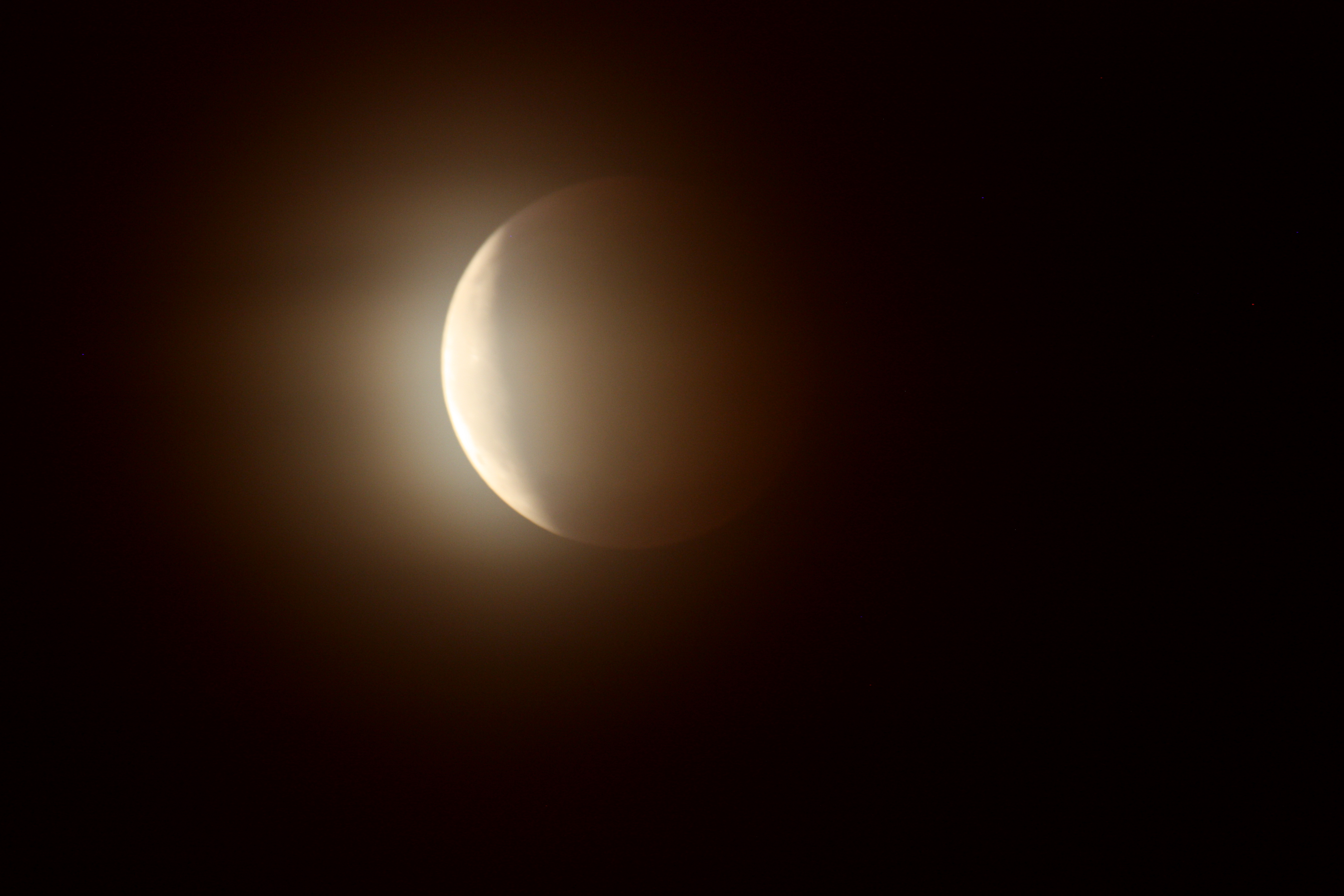 Diese Foto entstand kurz nach der Totalität, als der Mond durch die Wolken brach.