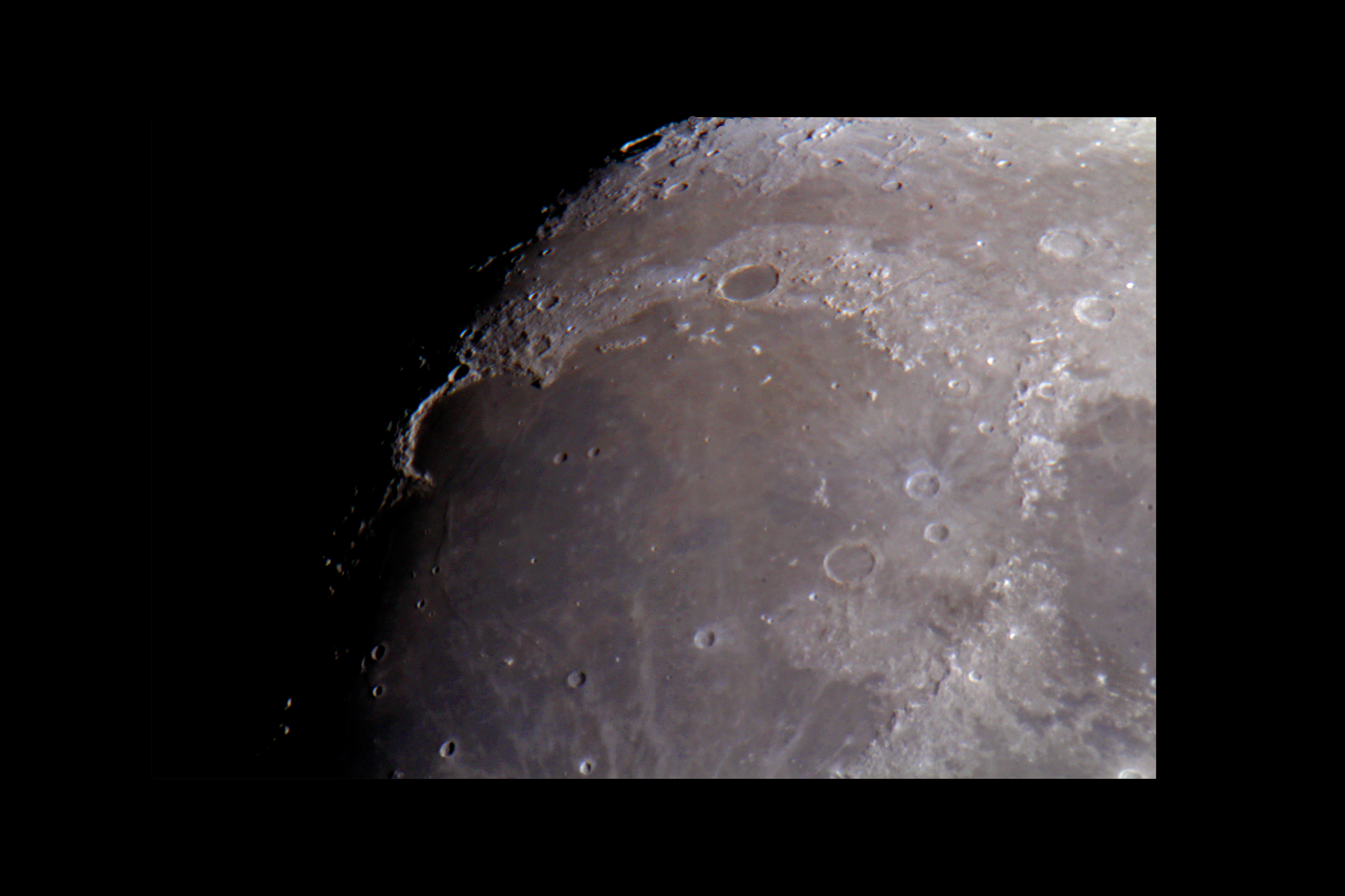 Bei gutem Seeing konnte ich das Mare Imbrium aufnehmen. Beim Sinus Iridum sieht man deutlich die Hangrutschungen des Kraterwalls.