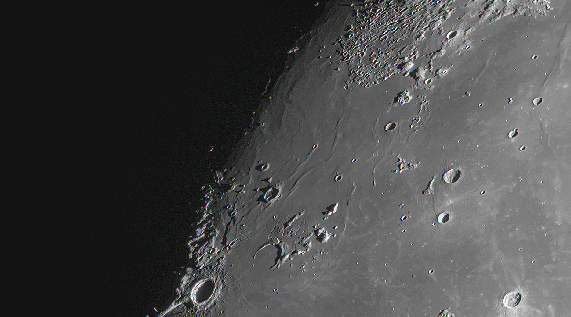 Das Auge wandert von den zwei Gruithuisen-Vulkanen im Norden zum Krater Aristarch, der sich langsam aus der Mondnacht herausschält. Etwas oberhalb Aristarch der halb versunkene Krater Prinz, der besonders durch seine Rillen bekannt wurde. Neben der Rima Prinz gibt es noch drei weitere Rillen, die man Rima Beethoven, Rima Händel und Rima Telemann nannte. Offiziell wurden die drei Namen nicht anerkannt.