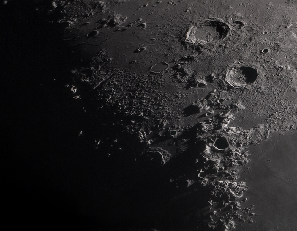 Eine meiner Lieblingsregionen in dramatisches Licht getaucht. Rechts oben die beiden Krater Aristoteles und Eudoxus, in der Mitte die Cassini- und links die Montes Alpes Region.