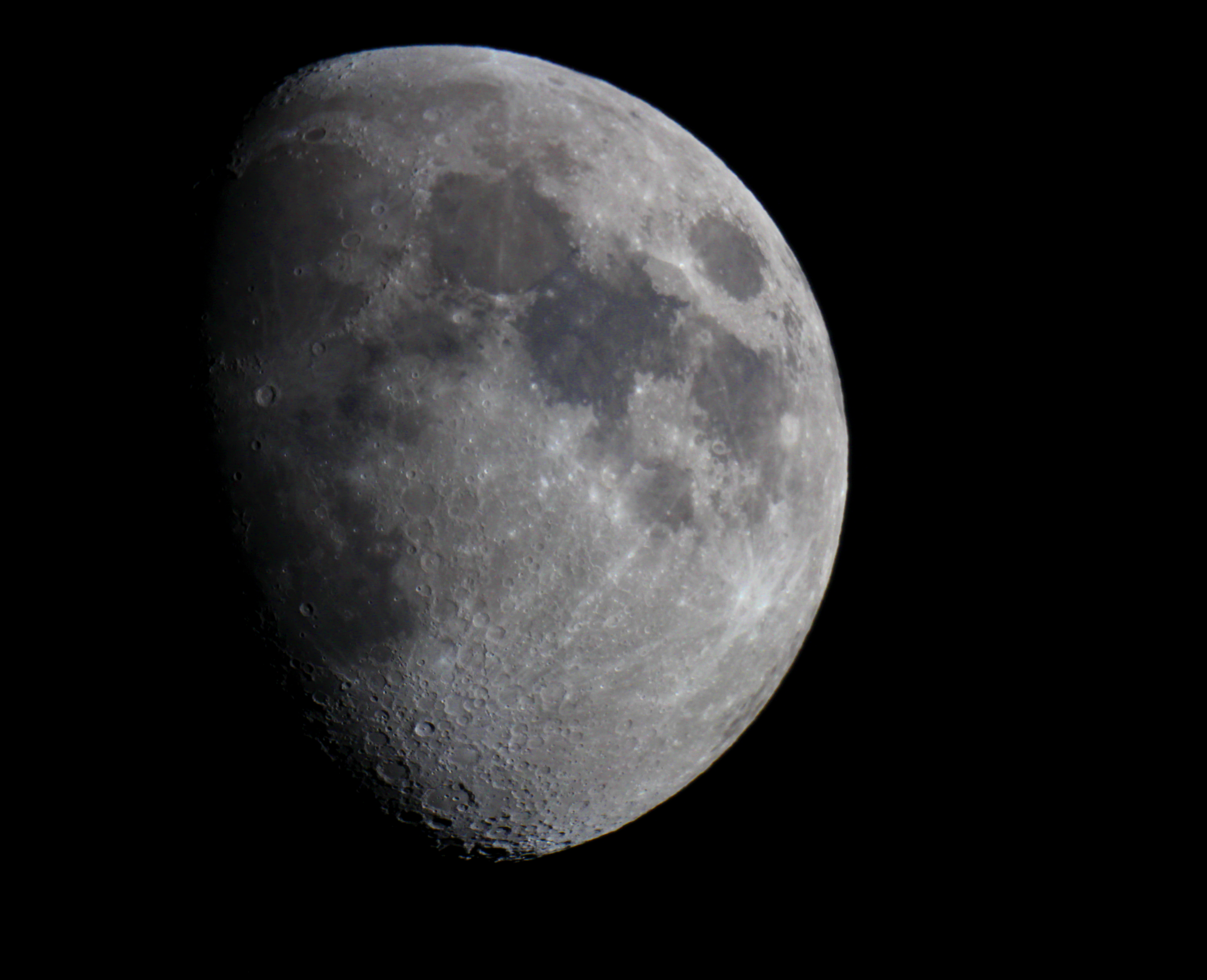 Nach vielen wolkenreichen Nächten war wieder einmal der Mond zu sehen, der in dieser Phase recht plastisch wirkt.