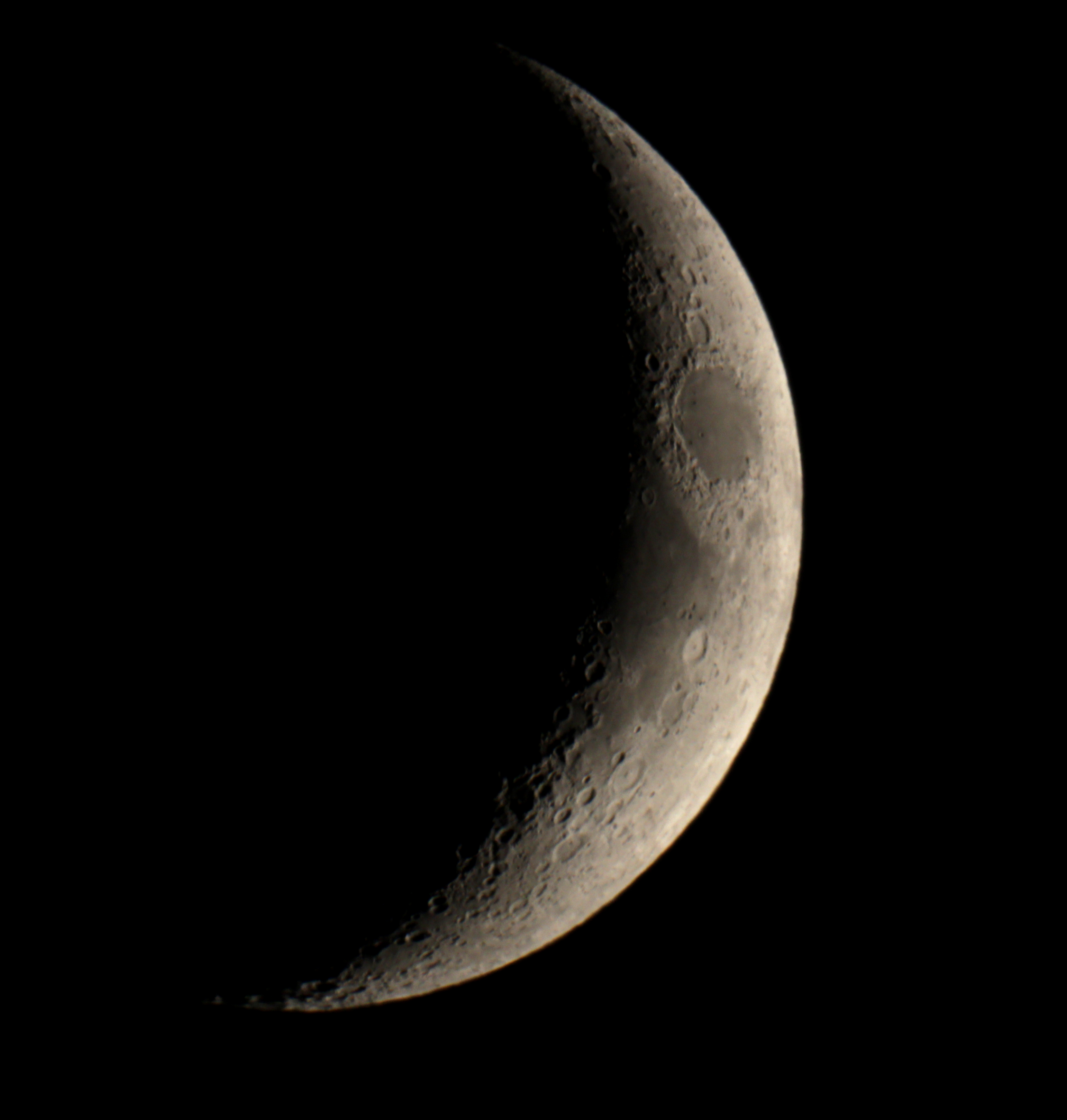 Die Mondsichel passte genau zwischen zwei Bäume.