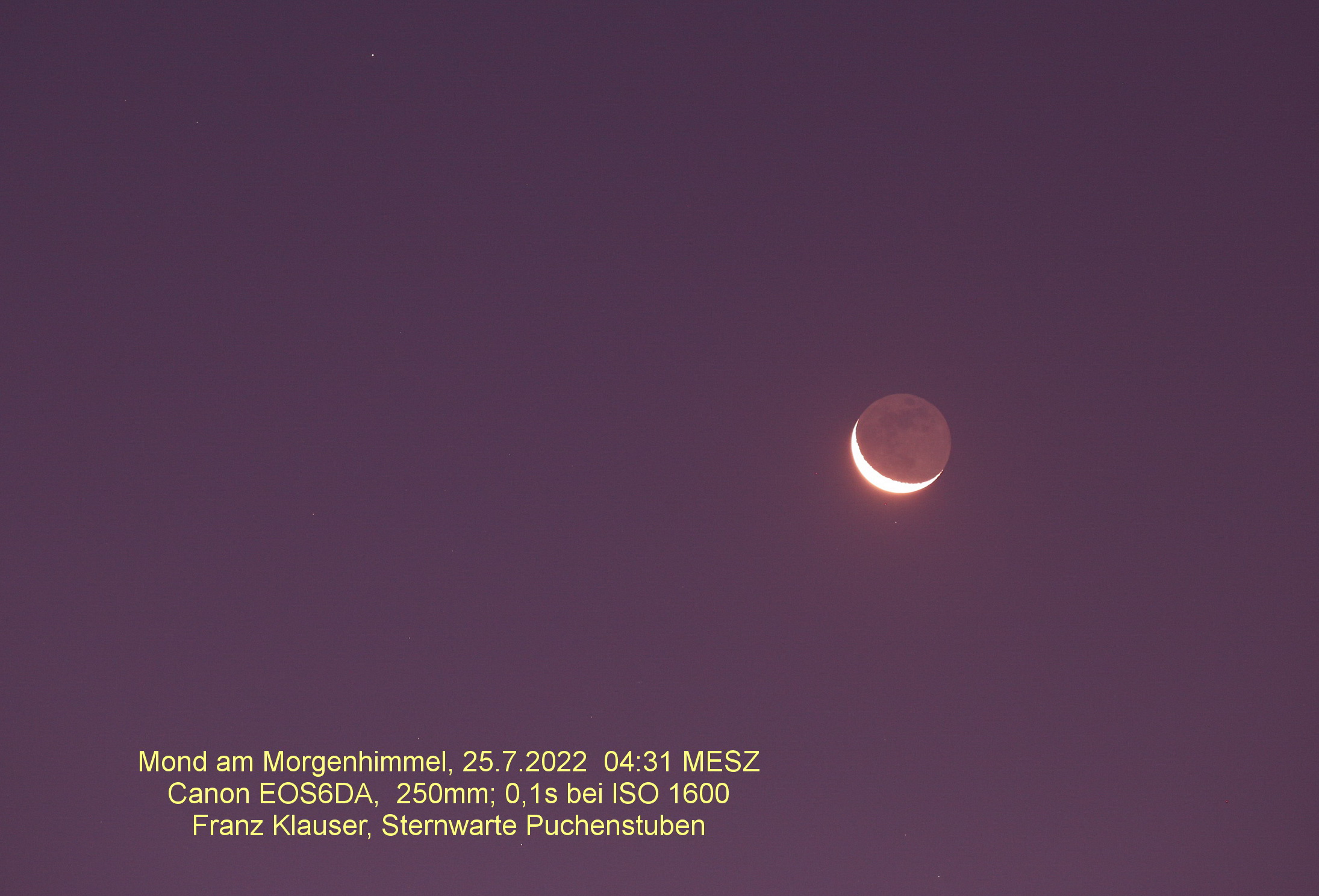 Nach einer durchwachten astronomischen Nacht bot am Ende noch der Mond ein Stimmungsbild im Osten.