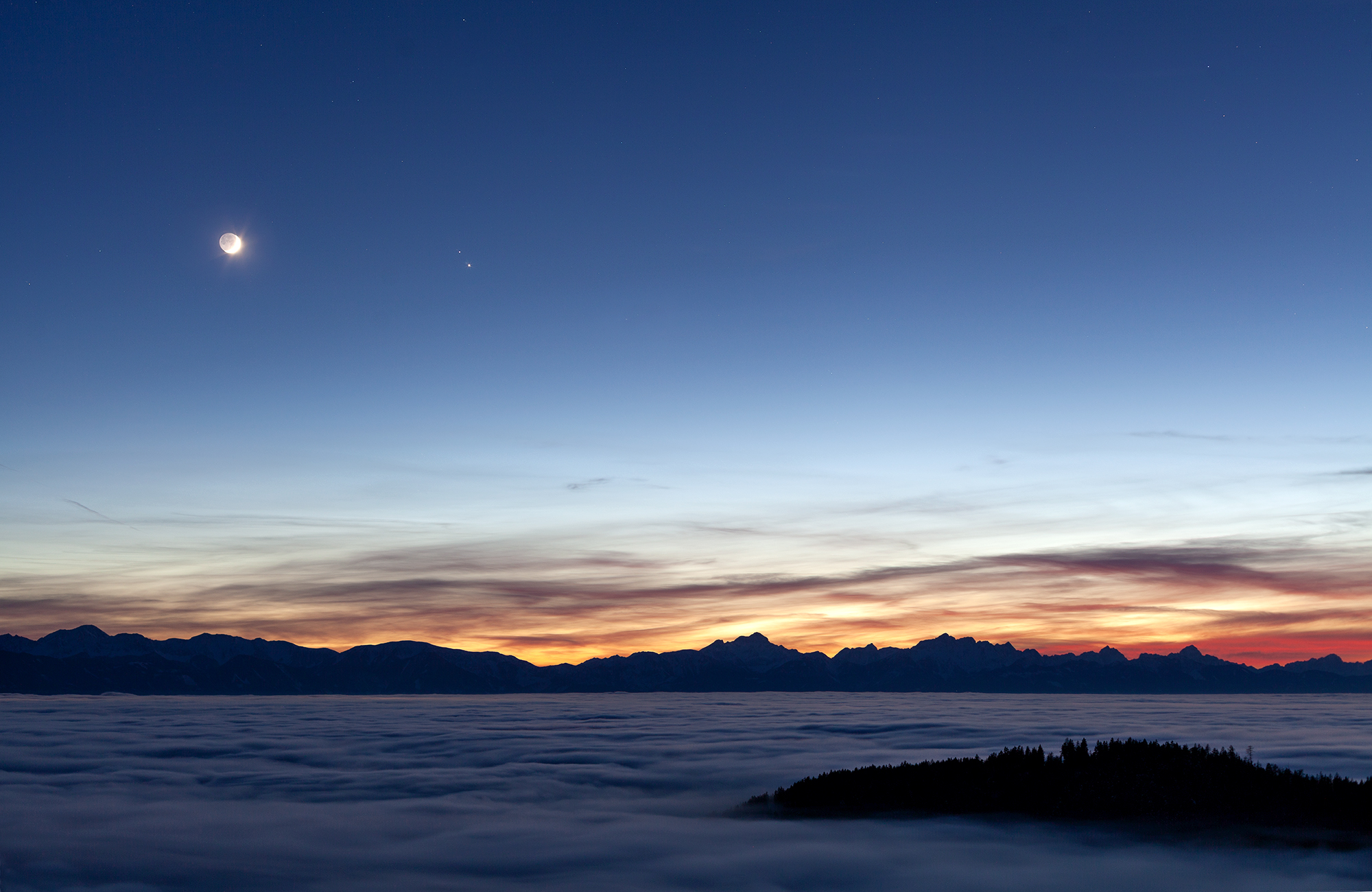 So eine Konstellation werde ich nie mehr beobachten. Deshalb nutze ich nun jede Gelegenheit. In 20 Minuten erreiche ich mit dem Auto die Nebelgrenze.