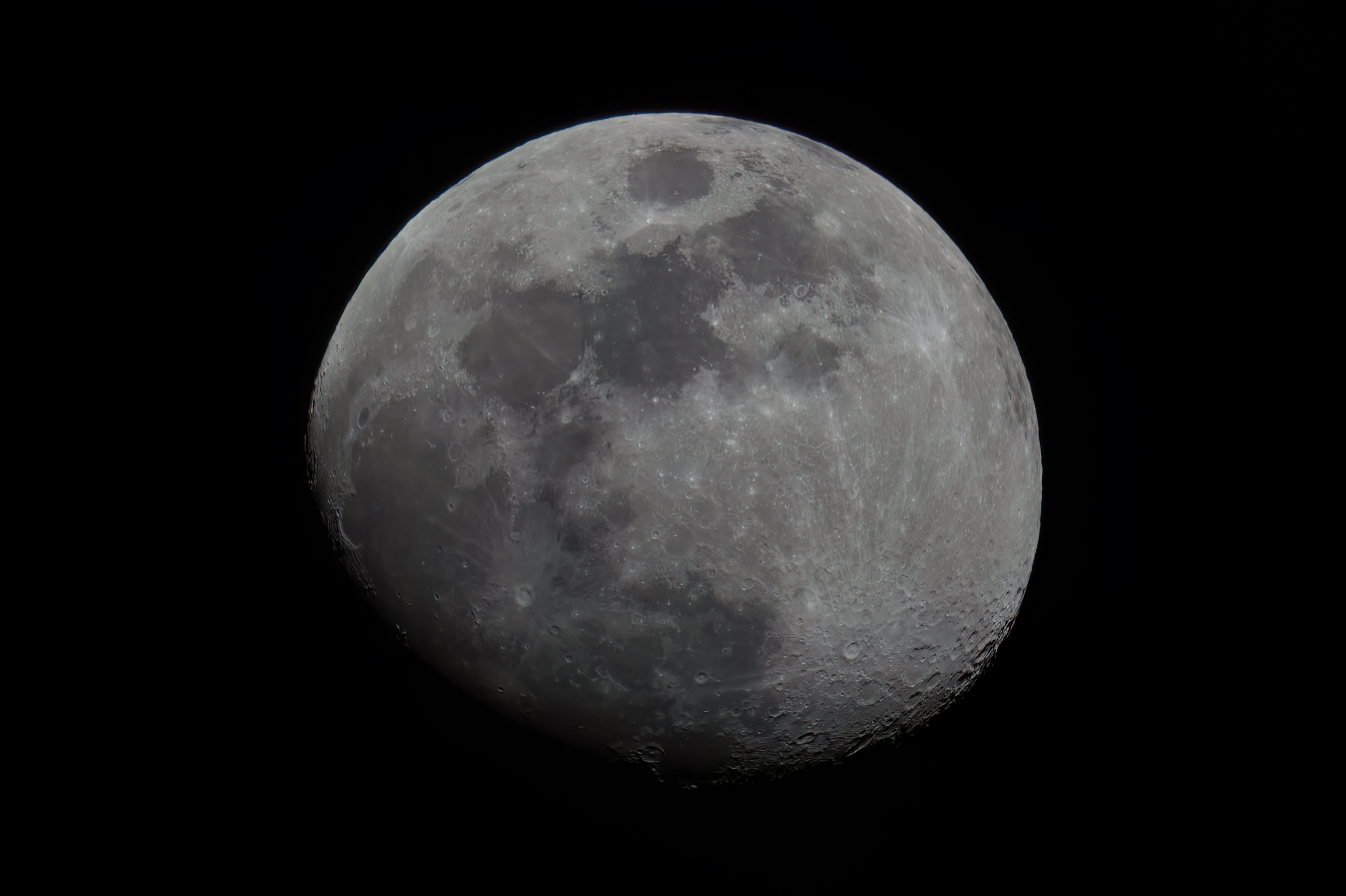 Der Südföhn beschert uns Tagestemperaturen nahe an +20°C. Der Gang ins Observatorium, um dann bei 4 m oder gar mehr Brennweite den Mond aufzunehmen macht da nicht wirklich Sinn - somit einfach vom Balkon mit dem kleinen mobilen Setup.