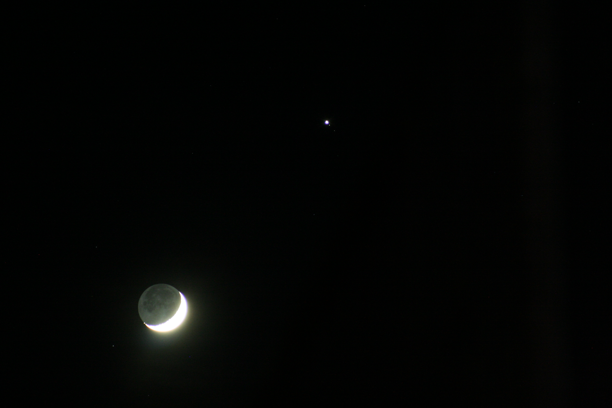 Leserbilder Astronomie: Mond im aschgrauen Licht mit Jupiter