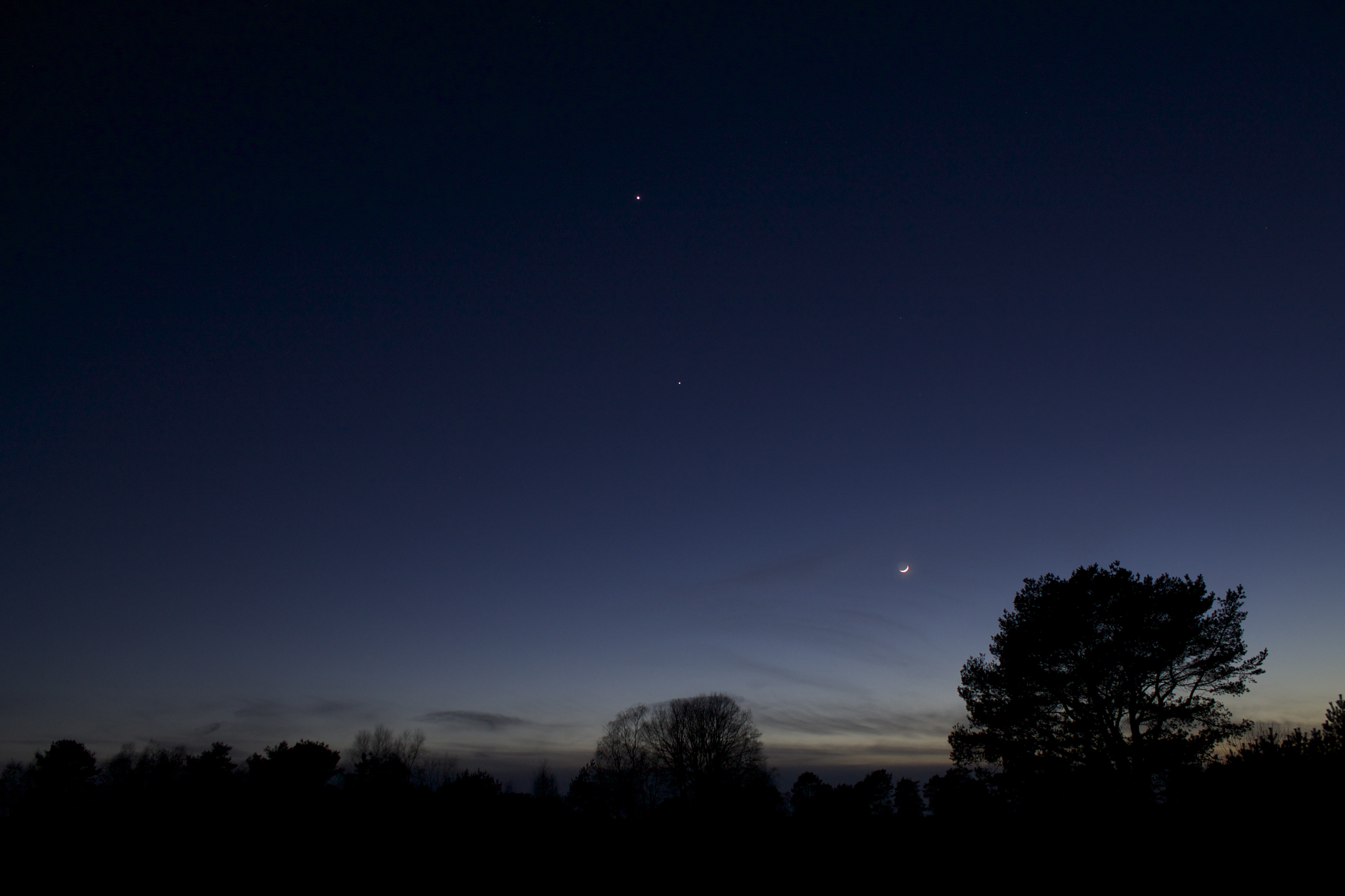 Konjunktion der schmalen Mondsichel mit Jupiter und Venus am 24.3.2012.
