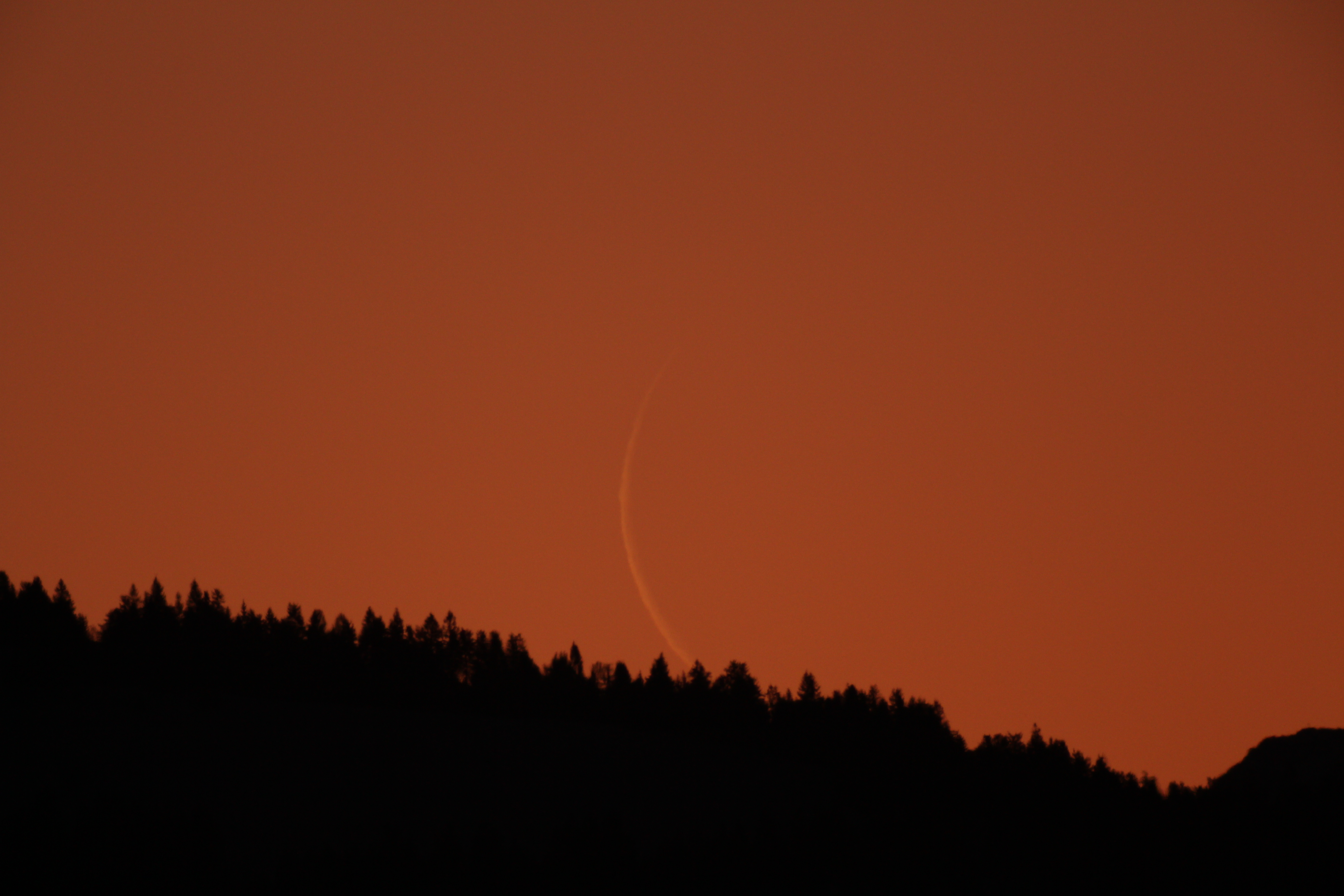 Dank Inversionswetterlage mit zähem Nebel im Tal, aber guter Durchsicht über selbigem, konnte ich am heutigen Morgen die schmale Mondsichel kurz nach ihrem Aufgang fotografieren.