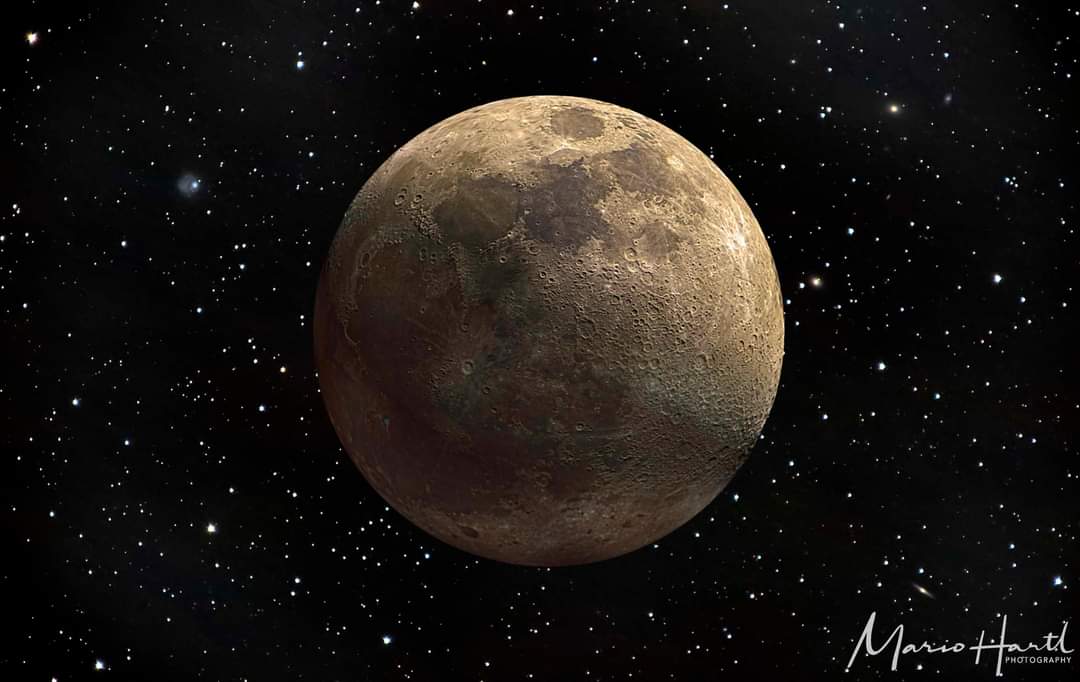 Eine Mondkomposition aus drei Mondphasen, um die helle und die dunkle Seite des Mondes auf einem Bild sichtbar machen zu können.