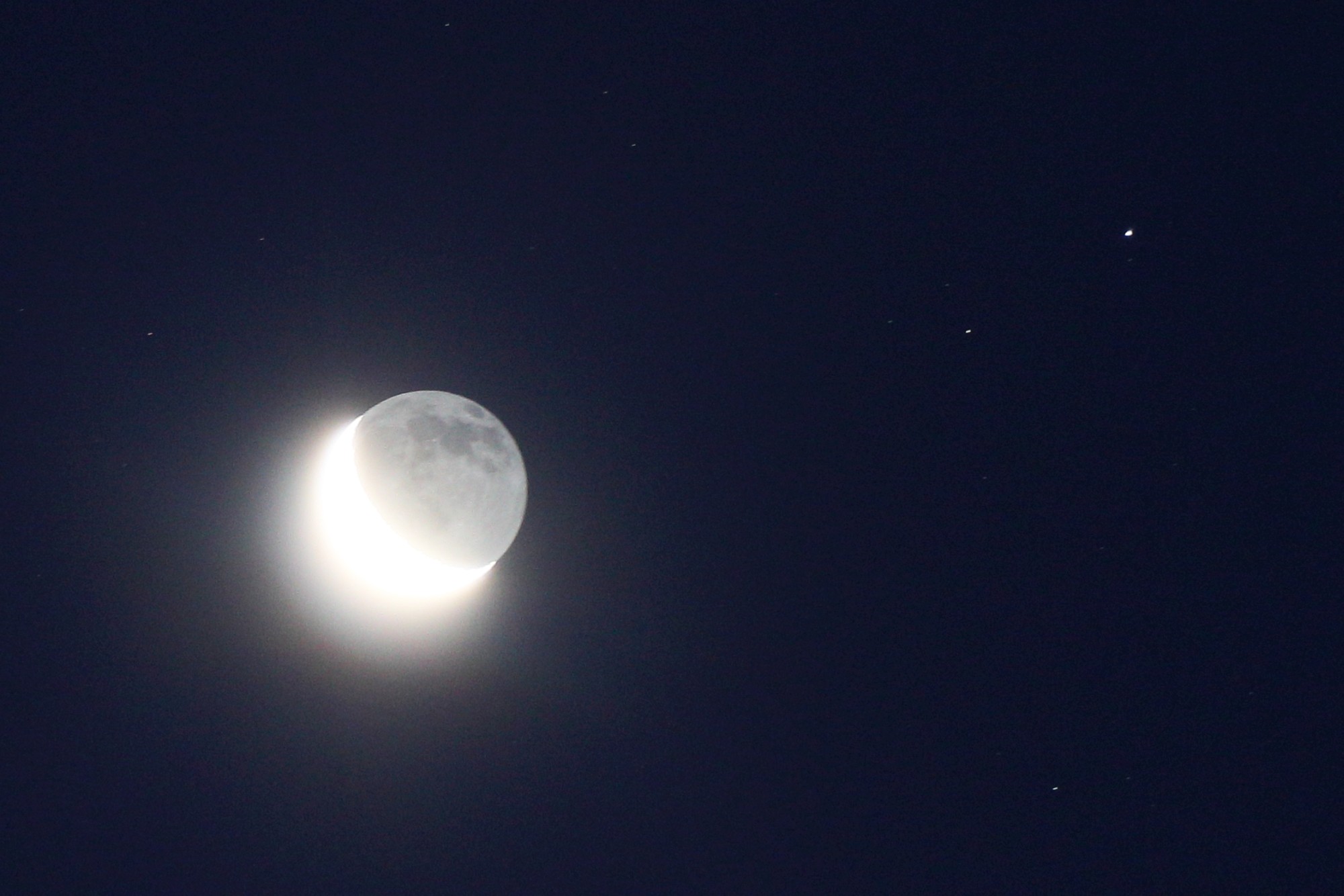 Zwei Wochen nach dem 16. November 2021 war das Mare Crisium randnah, allerdings nur im Erdschein zu sehen. Rechts ist der Stern Gamma Virginis zu erkennen.