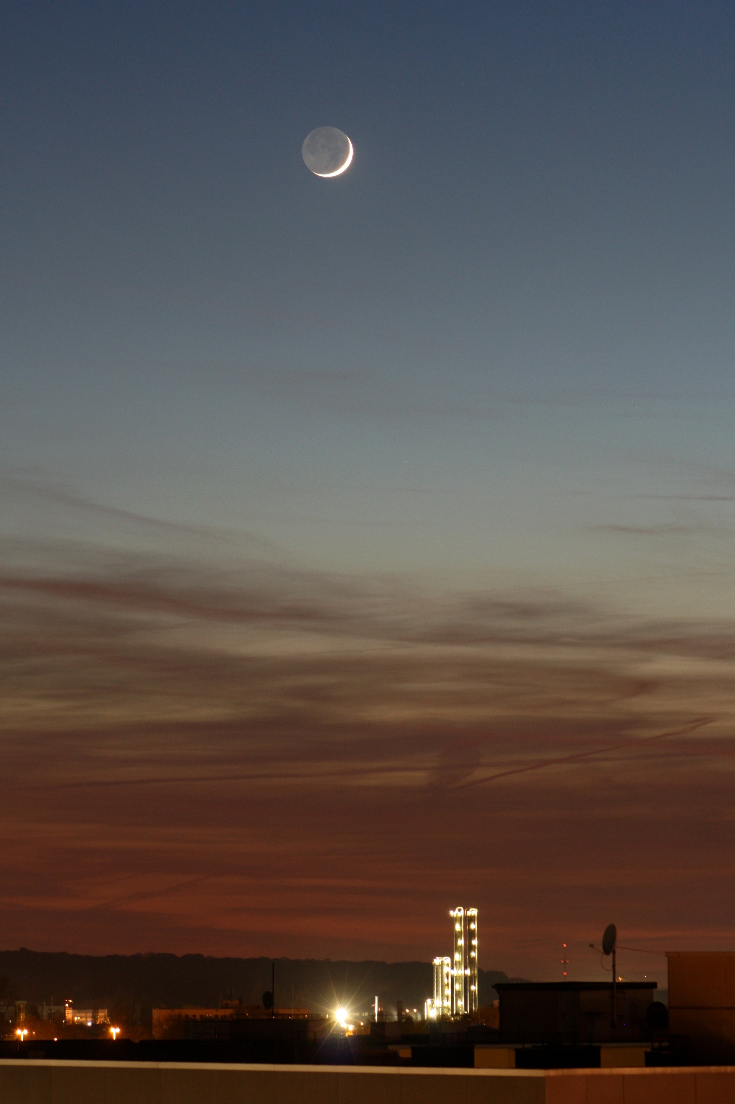 Zunehmender Mond am Abendhimmel über Mülheim-Ruhr.