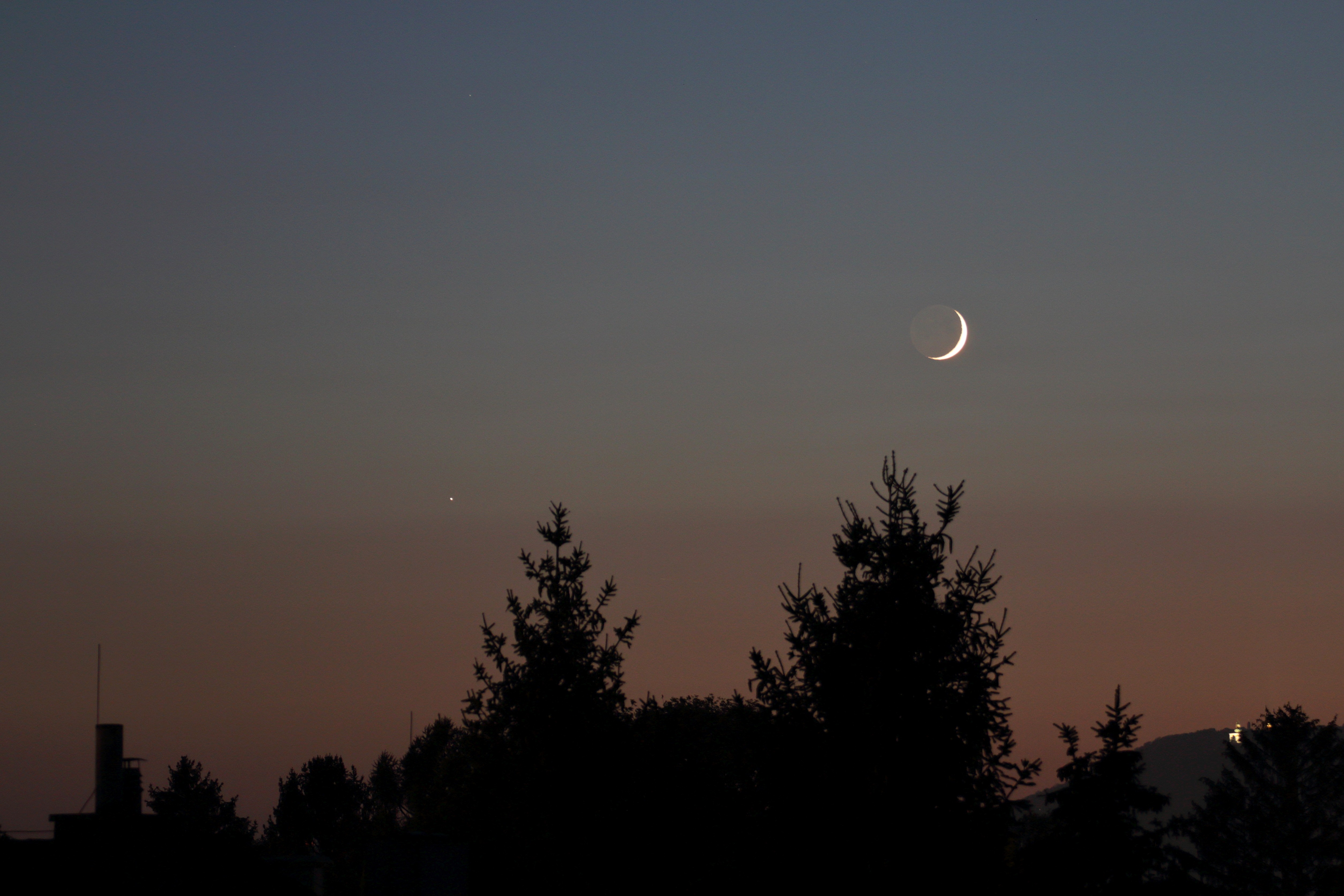Leserbilder Astronomie: Mond mit Erdlicht und Jupiter