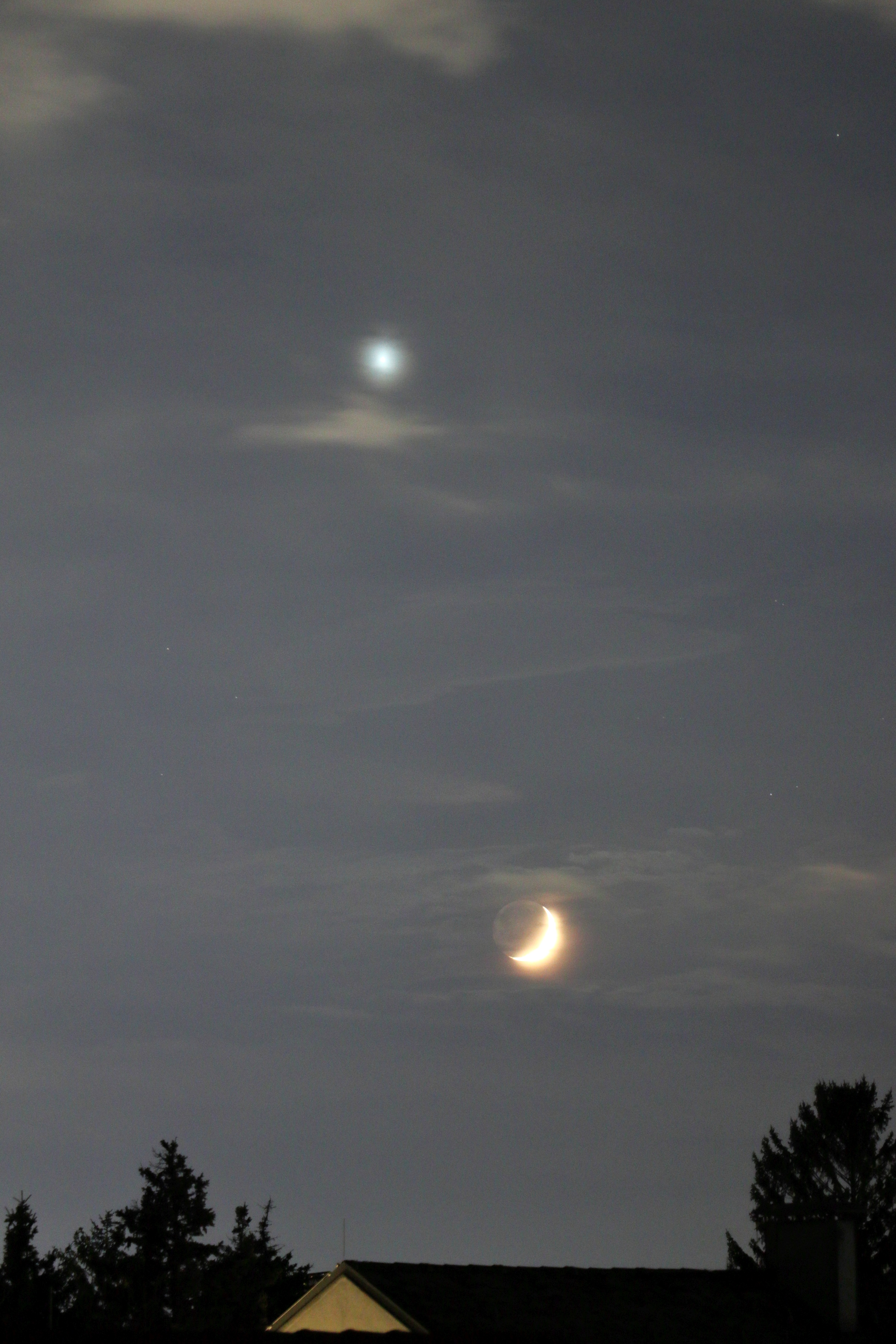 Leserbilder Astronomie: Mond (mit Erdschein) und Abendstern Venus