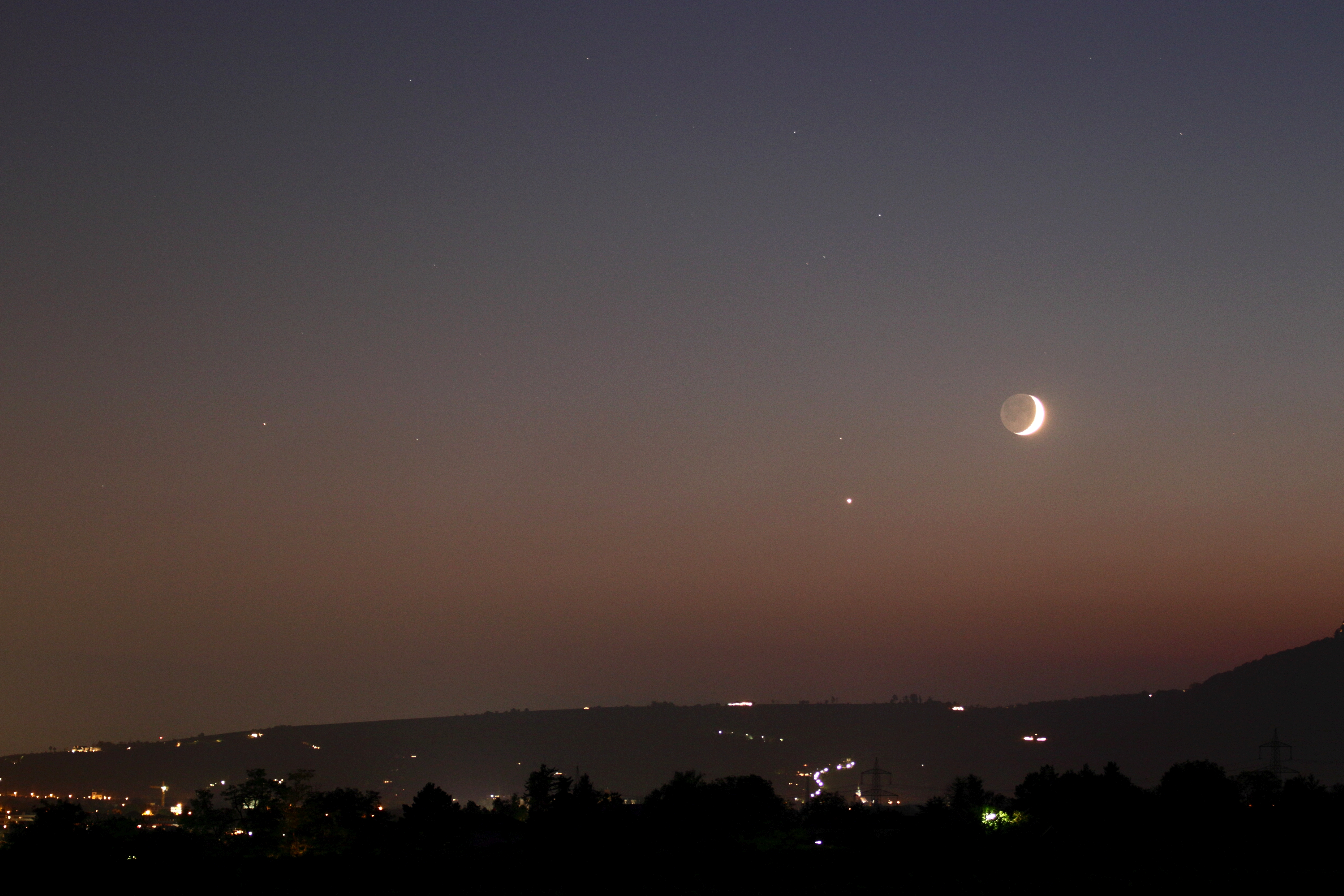 | Objekt | Mond, Erdschein, Venus, Antares |